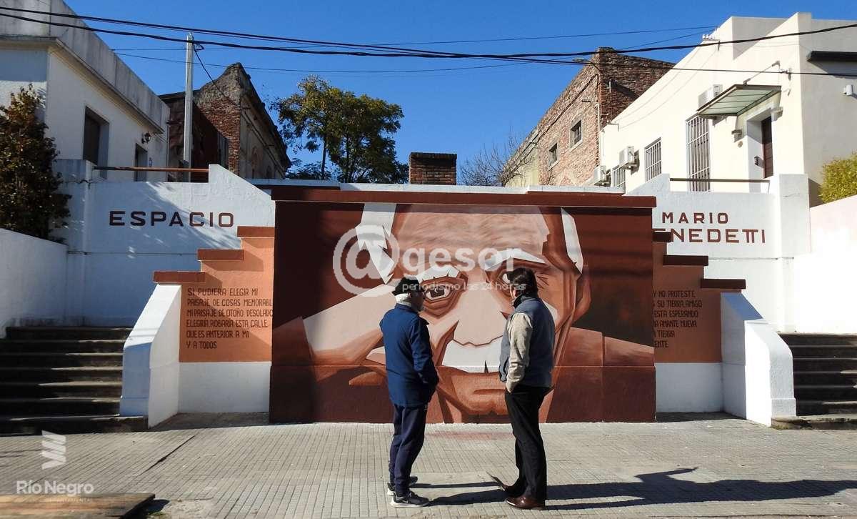 Nuestras felicitaciones al artista Ángel Juárez y su equipo por estampar a modo de homenaje esta obra que atesorará la ciudad como un recuerdo permanente del centenario del nacimiento de Mario Benedetti (14 de setiembre de 1920).