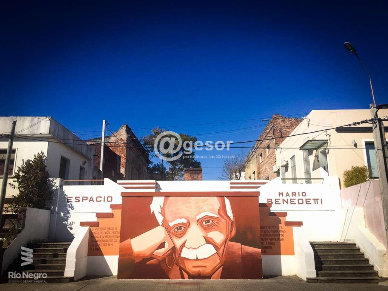 El mural del coterráneo Ángel Juárez, dando forma al “Espacio Benedetti” fue destacado por la Intendencia de Río Negro en sus habituales comunicados de prensa. Esta obra realizada en el centenario del nacimiento de Benedetti, está emplazada en la capital del vecino departamento.