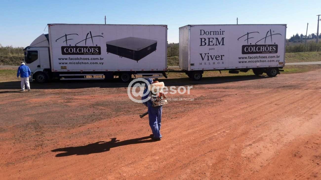 La intervención estuvo a cargo del CDE, bajo la coordinación de la Dirección Dptal. de Salud, efectuándose la desinfección por parte de personal del Dpto. de Higiene de la Intendencia de Soriano, con participación de la Jefatura de Policía en lo relativo a la seguridad en el lugar. La tarea se desarrolló en el predio de una empresa de transporte situado en camino “De los argentinos”, donde previo a la descarga de los elementos que portaba, se realizó la fumigación total del camión y su acoplado.