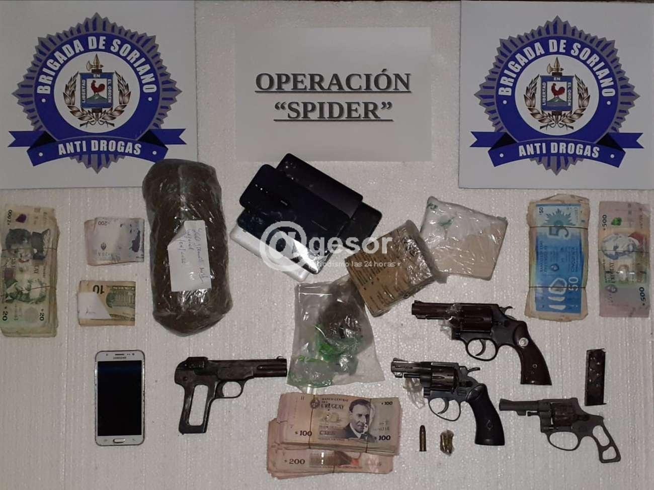 El operativo que tuvo lugar en la ciudad de Dolores, fue coordinado con la Fiscal de dicha ciudad, Dra. Virginia Sigona, siendo el resultado de varios meses de investigación. Es así que mediante allanamientos simultáneos se logró incautar: 1.017 gramos de pasta base, 3,6 gramos de cocaína, 285 gramos de marihuana, 1 revólver calibre 38, 2 revólveres calibre 32, 1 pistola calibre 7,65, $ 50.114 y U$S 44. Asimismo fueron conducidos en calidad de detenidos dos masculinos mayores de edad.