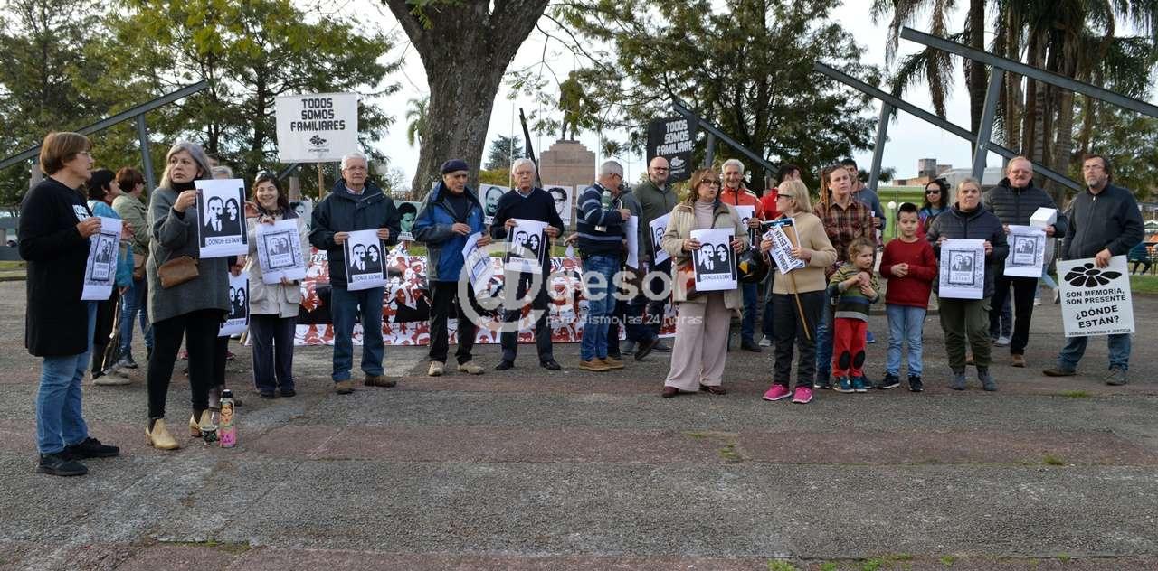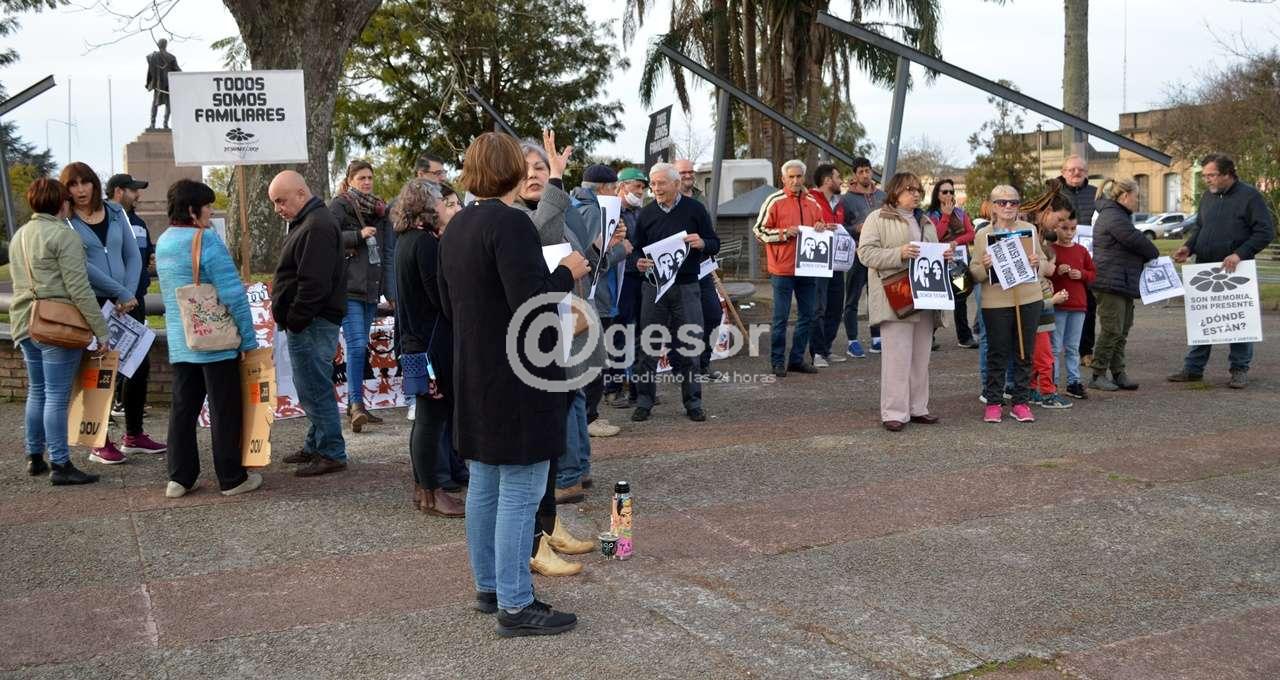 La Comisión Memoria, Justicia y contra la Impunidad de Soriano, realizó una concentración en plaza Artigas de Mercedes en la tarde de este viernes, en el marco de la convocatoria que en forma paralela se cumplió a nivel nacional ante el llamamiento de la organización Madres y Familiares de Detenidos Desaparecidos en Montevideo, apoyada también en el Interior en Red por Verdad, Memoria y Justicia.