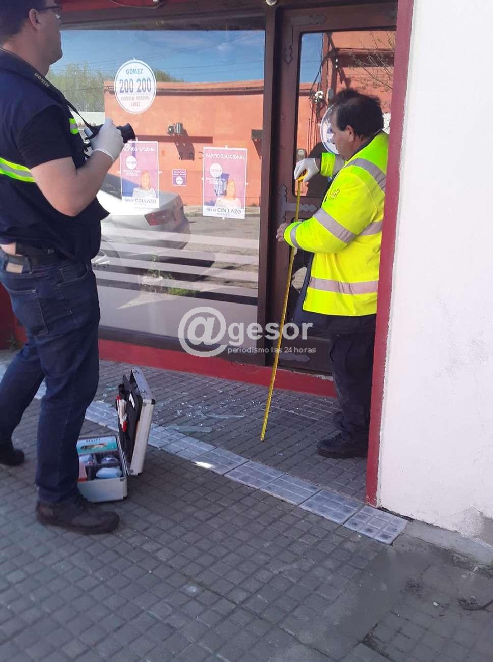 Incluyendo además fotografías de los daños ocasionados y del personal policial realizando el relevamiento de pruebas en el lugar.