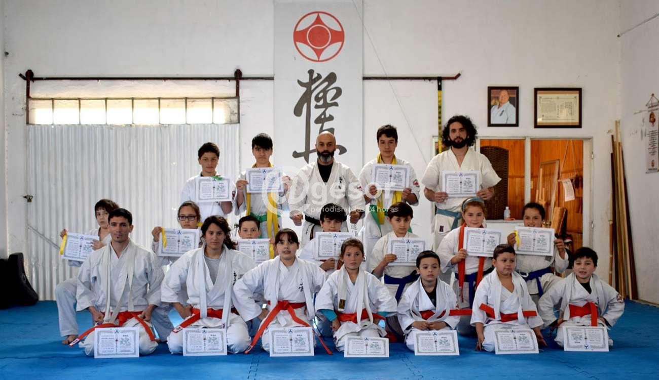 El pasado sábado 12 de setiembre se celebró el Examen correspondiente al período de Invierno en las instalaciones de Tamashi Dojo frente a la presencia de Sensei Adriano Hernández 3° Dan (Director de Kyokushin Tamashi Dojo y Zensekai Dojo Remeros), Sensei Marcelo Quijano (Tamashi Dojo) y que además contó la visita de profesores de Montevideo, Sensei William Chans y Sensei Robert Barragán ambos de Kyokushin-Kan Uruguay. Durante varias horas los 18 aspirantes a los distintos grados transpiraron sus Doguis, hicieron resonar sus Kiais y derrocharon espíritu por doquier en un esfuerzo constante de auto superación como se suele ver en un examen de Budo Karate. Cabe destacar que a pesar de que cada grado es sumamente importante para el camino de los distintos practicantes, dos jóvenes alumnos rindieron su cinturón verde, un grado de gran responsabilidad y exigencia. Tanto Lisandro López como Alan Pozzolo, quienes cumplieron con creces los requisitos para el grado que postulaban, son serios practicantes de nuestras academias desde hace varios años habiendo competido en muchísimas ocasiones con muy buenos resultados. Han tenido una trayectoria firme y ejemplar desde muy pequeños lo que hoy los posiciona como ejemplos a seguir por los más jóvenes. A medida que los grados avanzan, también lo hacen las responsabilidades y conocimientos, la empatía y la humildad, el respeto y la actitud compasiva dignas de un Budoka. Sosai Oyama creía profundamente que el Karate era una herramienta y un camino para hacer un mundo mejor, lleno de seres humanos nobles, fuertes y justos, con un gran sentido de amor y respeto por la vida. En Kyokushin Tamashi Dojo seguimos de cerca ese camino haciendo nuestro mejor esfuerzo día a día por superarnos y por transmitir tan importantes valores a las nuevas generaciones.