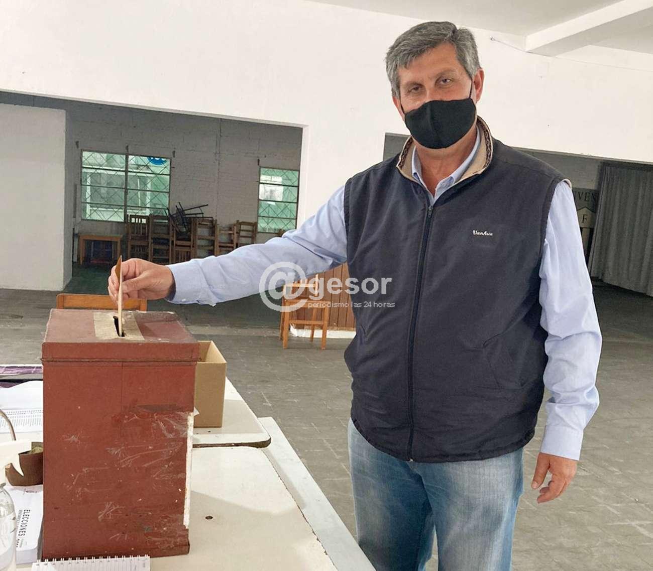 En circuito ubicado en sede del Club Libertad de Dolores sufragó el líder de la Lista 522 del Partido Nacional, Carlos Aunchayna, que acompaña la candidatura de Guillermo Besozzi a la Intendencia de Soriano, encabeza la Lista a la Junta Departamental y a la vez con la Lista 903522-A apoya la postulación de Bettina Chá como Alcalde al Municipio de Dolores.
