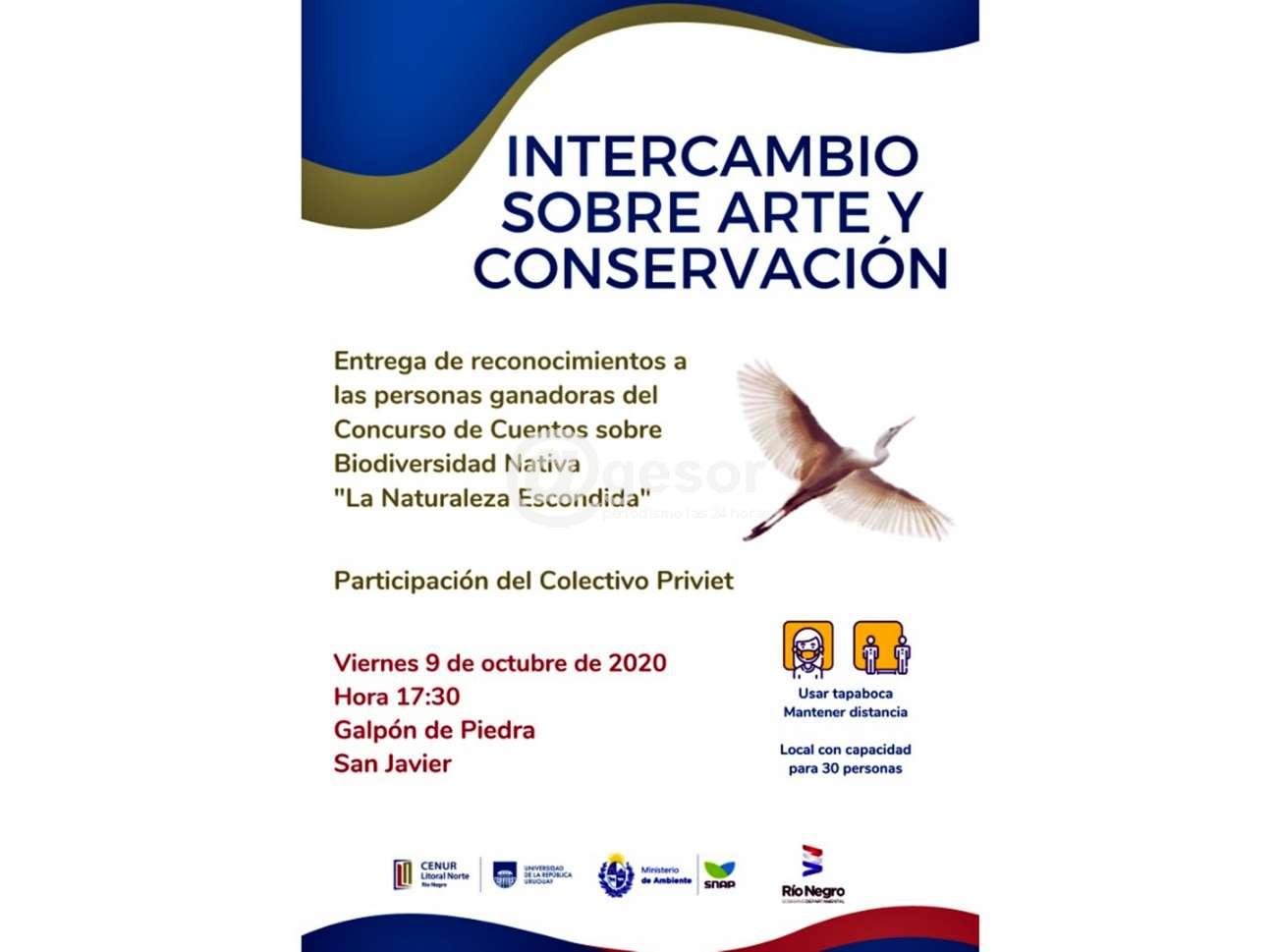 Este viernes 9 a las 17.30 horas en el Galpón de Piedra de San Javier (Río Negro), se llevará a cabo encuentro titulado "Intercambio sobre Arte y Conservación", oportunidad en la que se procederá a la entrega de reconocimientos a las personas ganadoras del concurso de cuentos sobre Biodiversidad Nativa "La naturaleza Escondida".