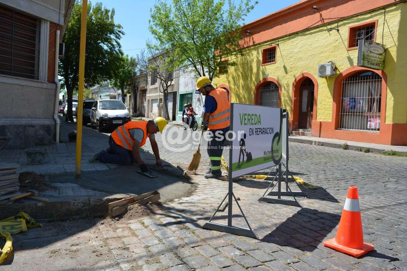 En Mercedes, personal del Dpto. de Arquitectura quien está realizando la tarea en varias esquinas, expandiéndose con la construcción desde la zona céntrica hacia el norte y el este de la ciudad.