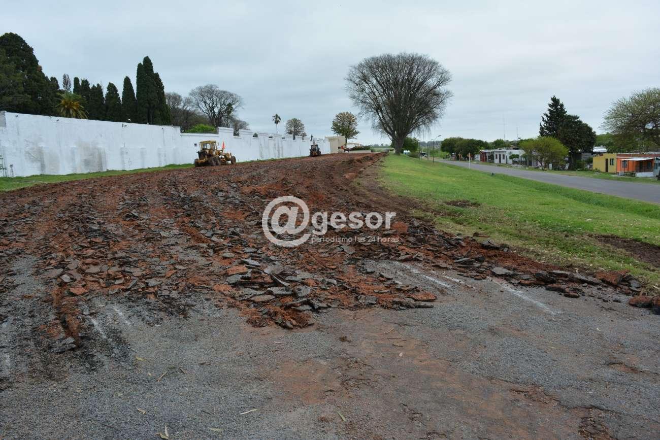 La Dirección de  Obras de la Intendencia de Soriano comenzó a trabajar en la repavimentación del acceso y el estacionamiento vehicular situado sobre calle Wilson Ferreira Aldunate en el Cementerio Central de Mercedes