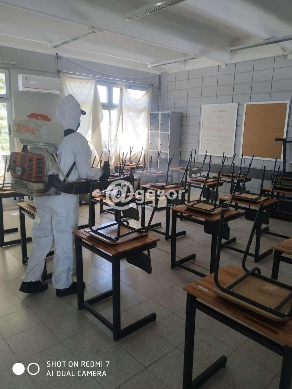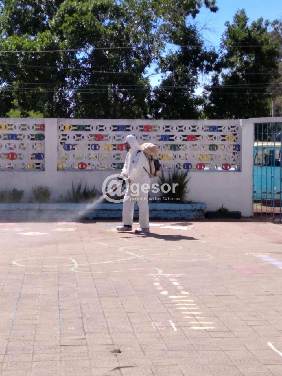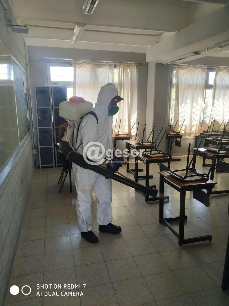 Este lunes personal municipal realizó trabajos de desinfección en el Centro Pelotaris Mercedes, el los liceos 2 y 4, las escuelas 1 y 11 de Mercedes y también en las escuelas rurales Nº 25, 74 y 117. Todos estos lugares permanecerán cerrados si que se impartan clases en esta jornada.