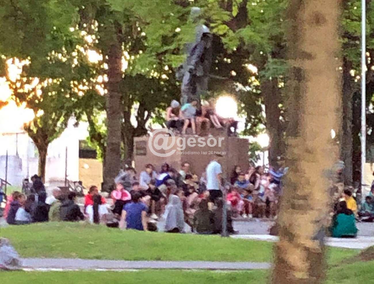 La fotografía muestra lo que ocurría en la tarde y tardecita de este sábado en la plaza Artigas de Dolores, y el colega doloreño expresó su malestar porque cuando intentó comunicarse con el Jefe de Zona II como con el Jefe de Policía, no le respondieron desde el celular y así lo expresó también en su rad social, como asimismo con autoridades municipales que tampoco le atendieron la llamada.