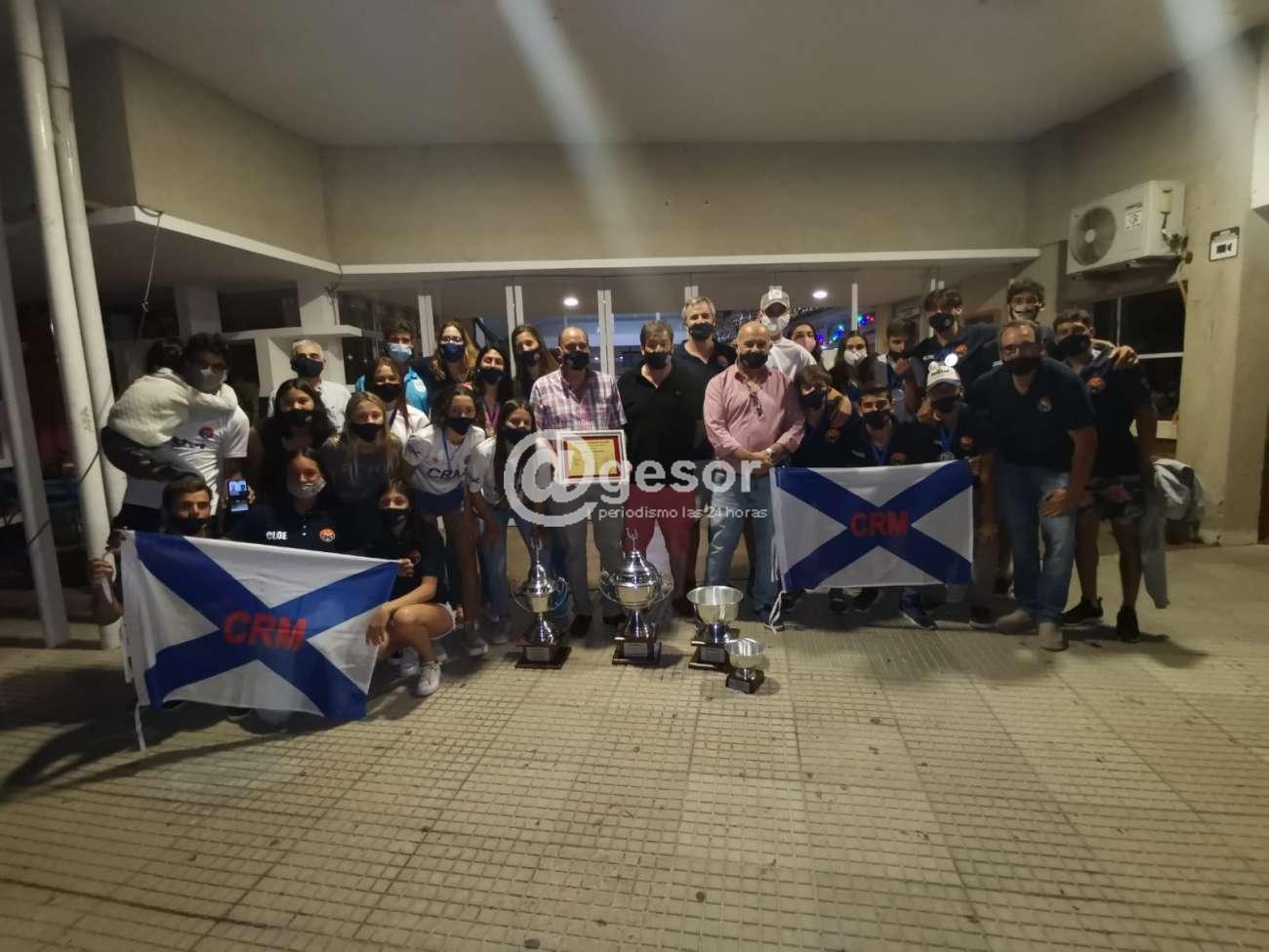 El plantel y cuerpo técnico del Club de Remeros Mercedes que obtuviera el Campeonato Uruguayo de Remo que se disputara en competencias desarrolladas en el lago Calcagno, fueron recibidos por la directiva de la institución en la sede, en la noche de este lunes, donde se les tributó reconocimiento por el logro alcanzado, que a su vez se trasunta en el cuádruple título a ese nivel obtenido por el club costero mercedario, en una temporada atípica por todo lo que ha rodeado al 2020 y por lo tanto demandó sacrificio extra de todos los integrantes del club en sus diferentes actividades.