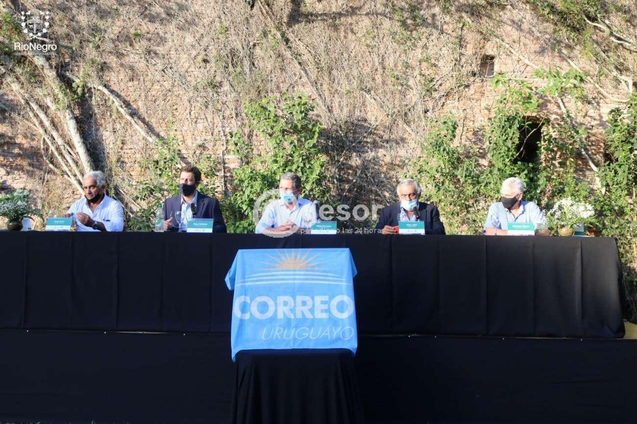 La actividad también contó con la Presidencia del Ministro de Turismo Germán Cardozo, los Intendentes Omar Lafluf de Río Negro, Guillermo Besozzi de Soriano, autoridades de Montes del Plata y de la empresa postal estatal.