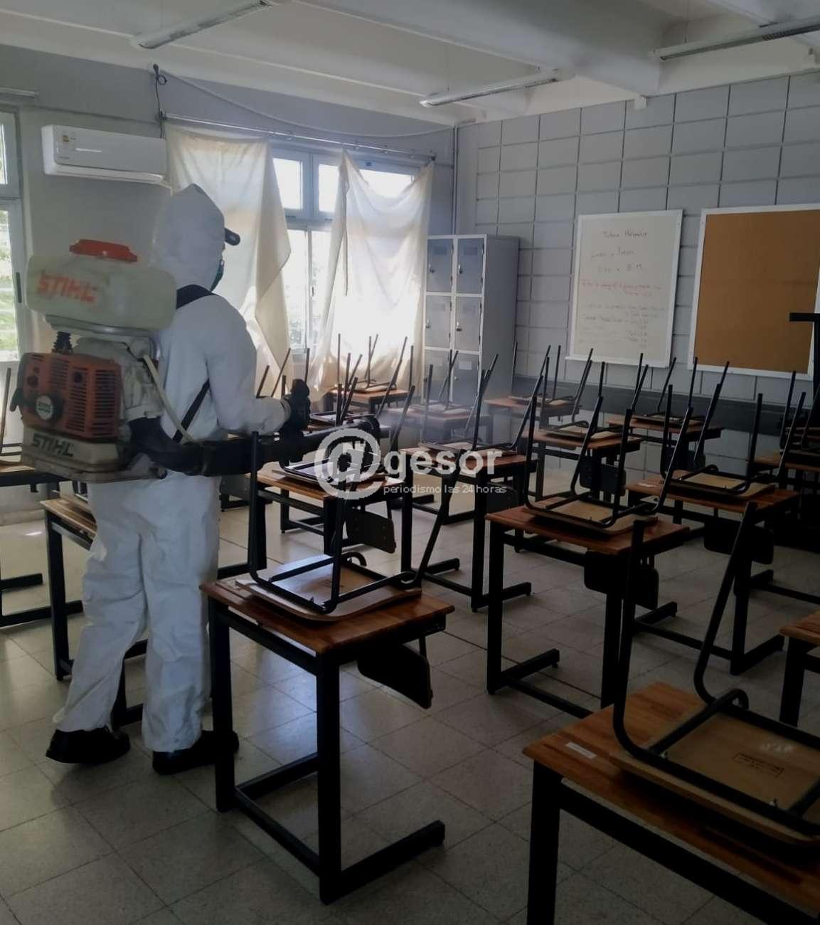De esta manera se realiza la desinfección tanto en el interior como en el entorno de centros de estudio, instituciones deportivas, oficinas estatales departamentales, centros de salud, entre otros espacios.