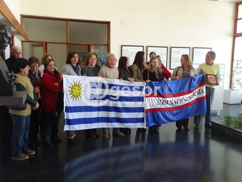El jefe del Gobierno Departamental en la ocasión hizo entrega a la delegación, de una bandera de Uruguay, una del departamento de Soriano y de otros presentes que harán entrega en los ayuntamientos españoles de Sevilla, Peñaflor y Almodóvar del Río que estarán visitando.