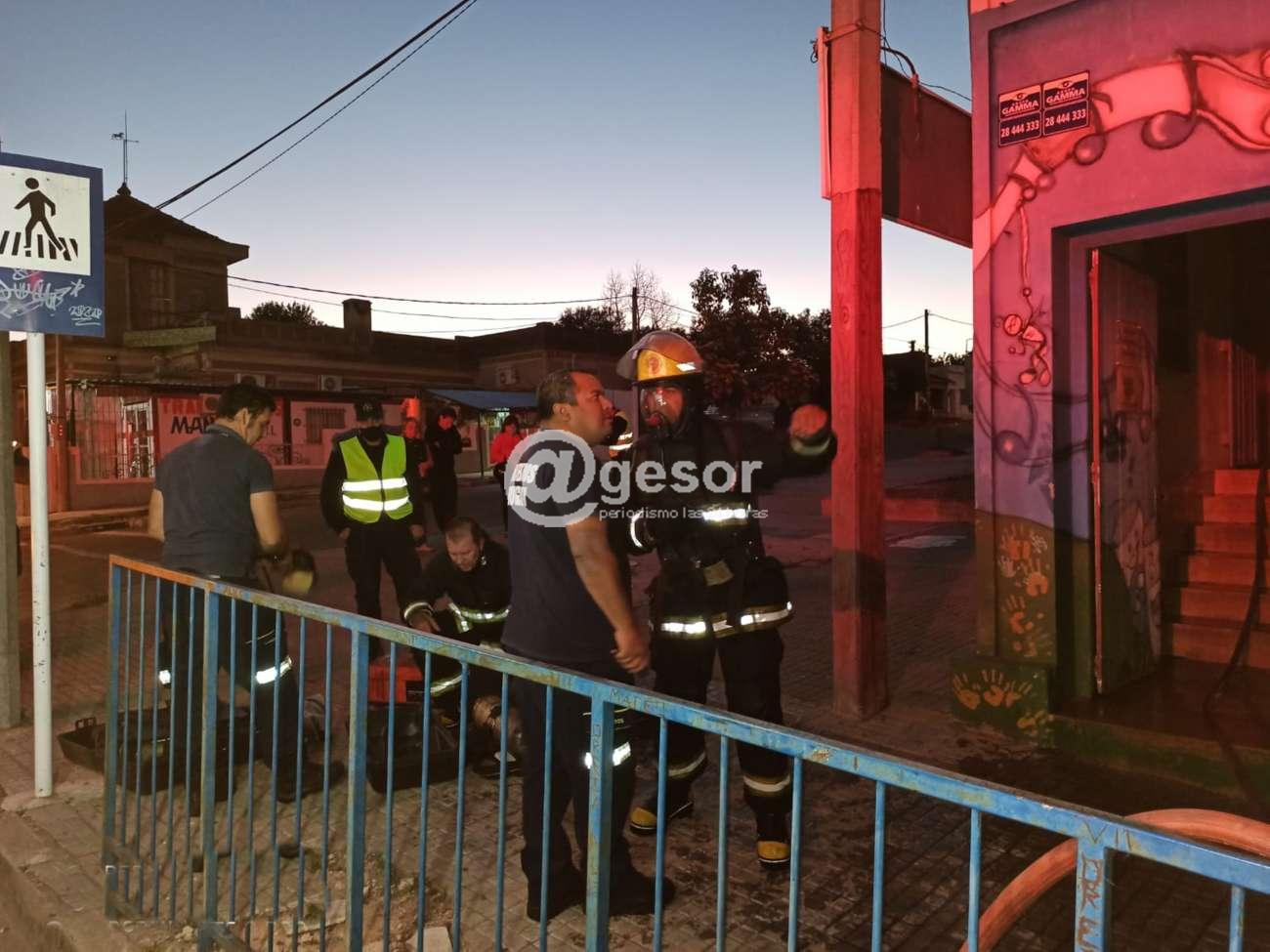 El Jefe del destacamento señaló "hubo fuego y mucho mayor concentración de humo debido a los materiales afectados, mucho plástico, pero también hubo llamas. Es un local con tres ambientes, una oficina, dos salones y una ambiente destinado a cocina, esa es la afectación mayor, después hubo afectación por humo en baños, en un salón multiuso, pero lo más importante se dio en la oficina, dos salones y en la cocina donde se originó el incendio".