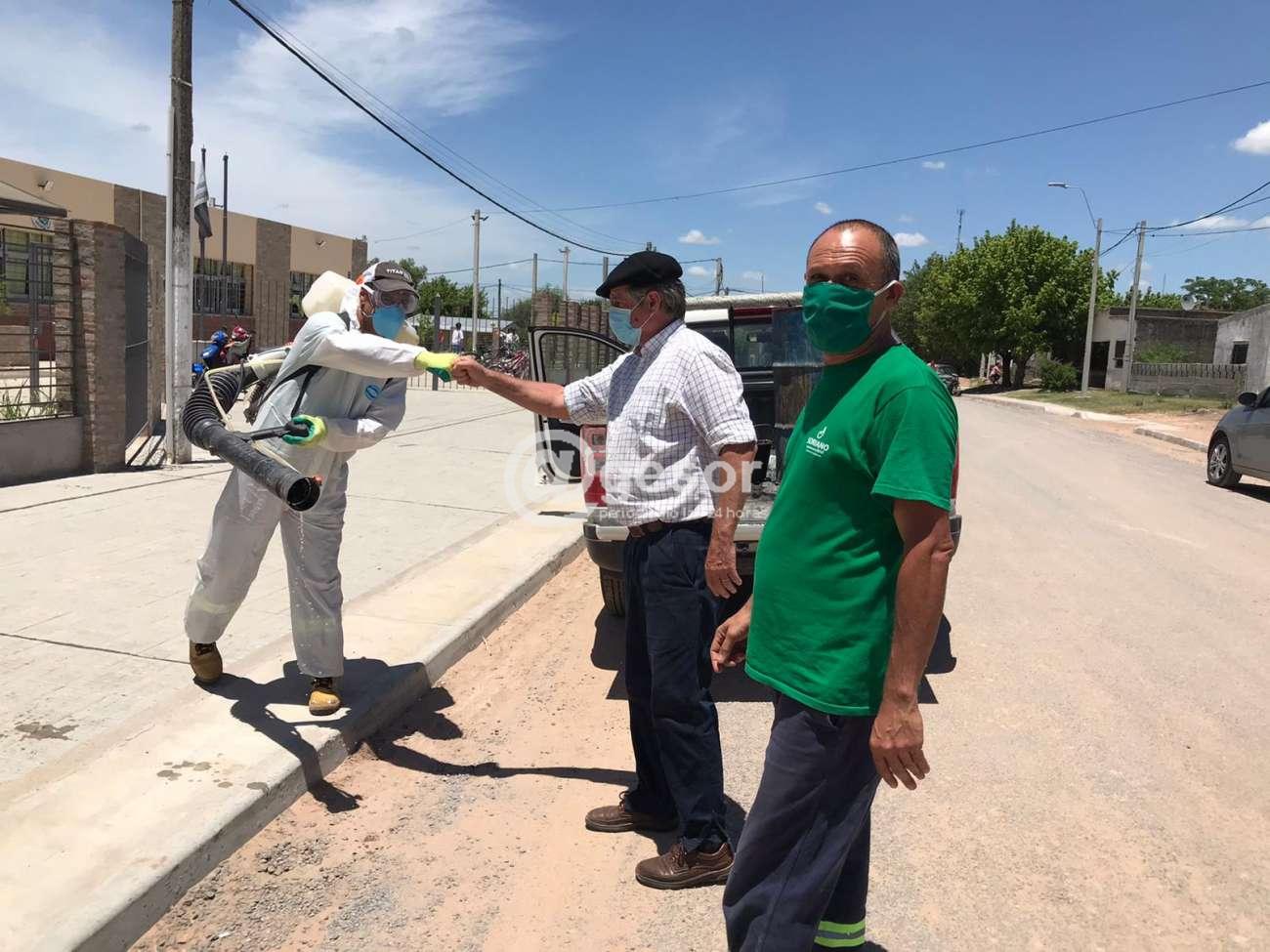 En la oportunidad el jefe del gobierno departamental recorrió el barrio viendo las obras y aprovechó a dialogar con los funcionarios a cargo de las mismas. Hizo lo mismo con el personal de la Dirección de Higiene que está realizando trabajos de desinfección en prevención del COVID-19.