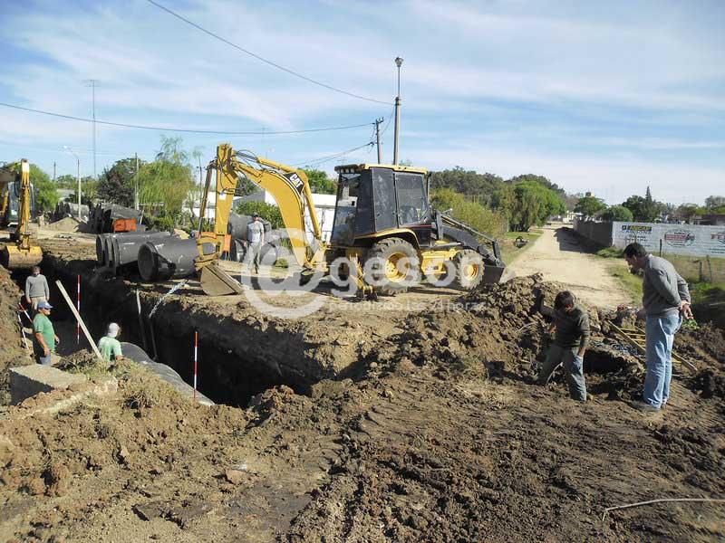 La primera parte de la tarea es la excavación y tendido de la red de cañerías para los desagües pluviales.