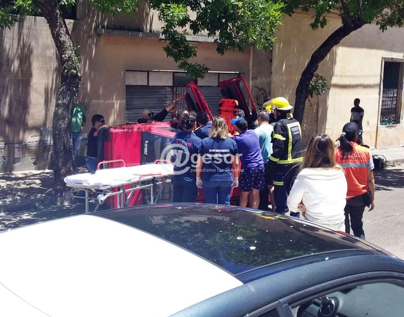 Próximo al mediodía de este domingo se tomó conocimiento de vuelco de automóvil Fiat ocurrido en calle Zapicán entre Sánchez y Rodó, por causas que se procuran establecer el vehículo quedó de costado sobre la vereda y el conductor atrapado dentro del mismo, por lo que debió solicitarse la presencia de dotación del destacamento de Bomberos de Mercedes, quienes concurrieron al ligar para poder extraer a la persona en conjunto con personal de emergencia médica Vivem que llegó hasta el lugar, junto con funcionarios policiales y de la Brigada MUnicipal de Tránsito.