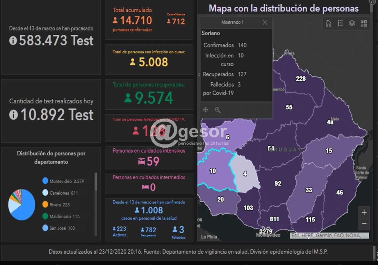 Desde marzo a la fecha en Soriano se han registrado 140 casos de Covid-19, de los cuales 127 personas se recuperaron de la enfermedad, y 3 fallecieron.