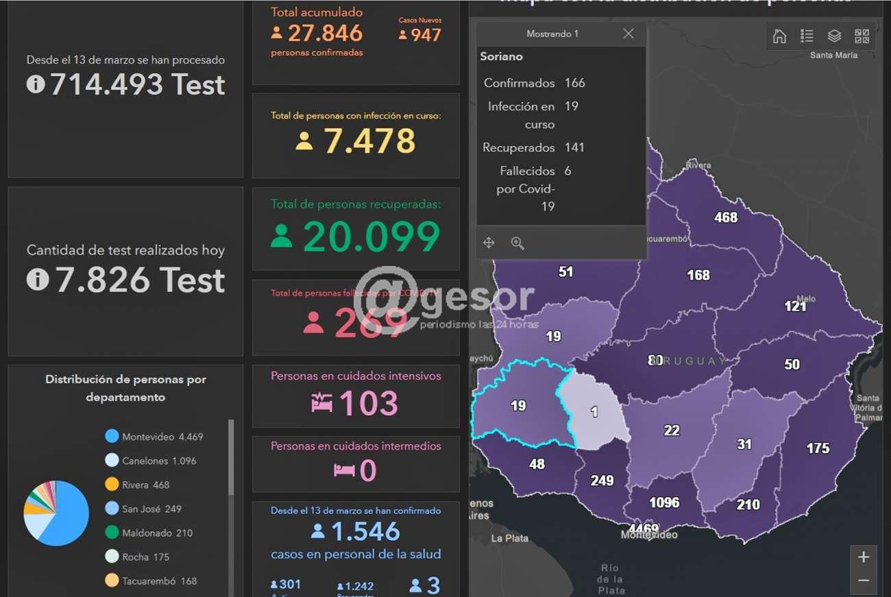 En lo que refiere a Soriano, al no haberse registrado ningún caso de persona recuperada, éstas se mantuvieron en 141, por lo que sumando los tres casos nuevos, los activos pasaron a ser 19 y los fallecidos siguen siendo 6, por lo que el total de confirmados desde que se inició la pandemia es de 166 casos.