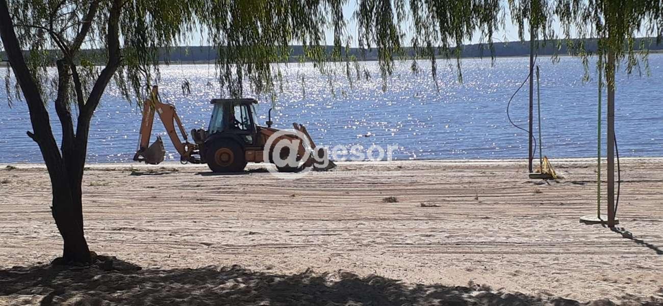 Personal y maquinaria del Departamento de Higiene trabaja en coordinación con la Junta Local de Palmar realizando la limpieza en playas del lago.