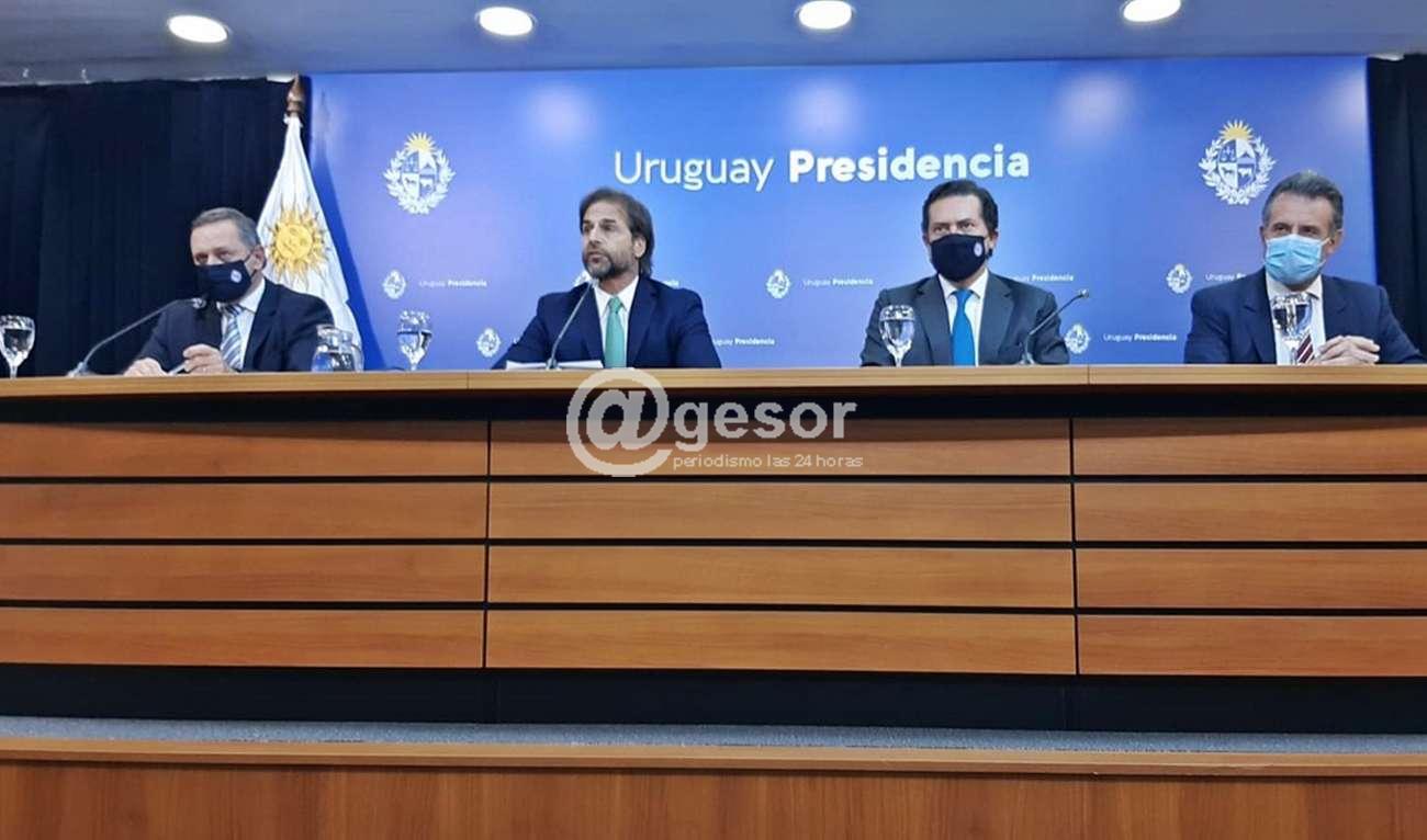 En la sala de prensa de la Torre Ejecutiva, acompañaron al mandatario el secretario de la Presidencia, Álvaro Delgado, el prosecretario, Rodrigo Ferrés, y el ministro de Salud Pública, Daniel Salinas. Además, estuvo presente el titular de Defensa Nacional, Javier García.