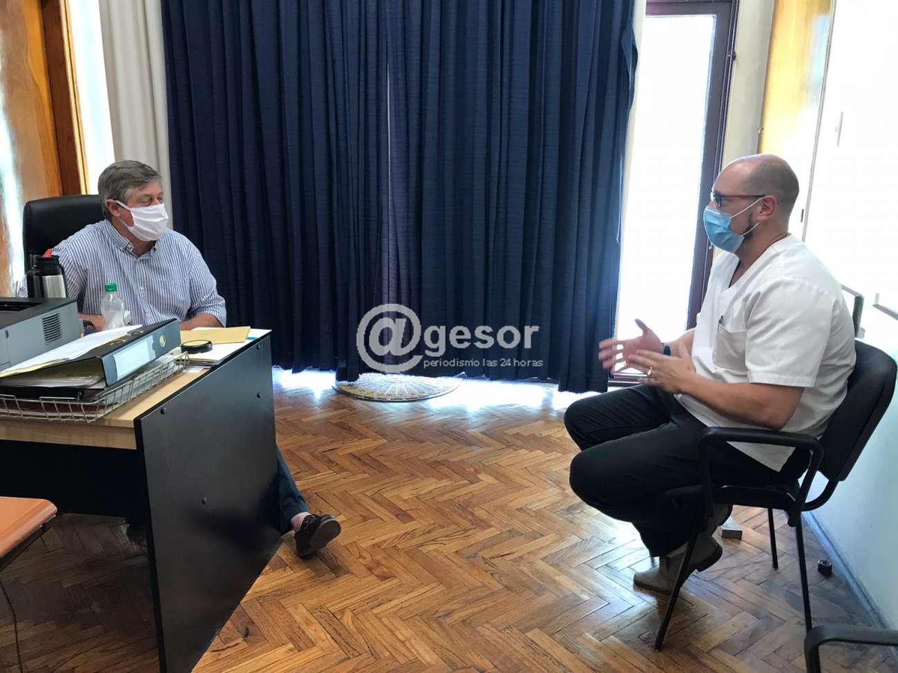 Este martes el Intendente Guillermo Besozzi se reunió con el Dr. Juan Carlos Daruech, Director de la RAP Soriano (Red de Atención Primaria), con quien trató temas generales relacionados a la salud, y de trabajo en conjunto, tales como apoyo que realiza la Intendencia a los locales para policlínicas y choferes de ambulancia entre otros.
