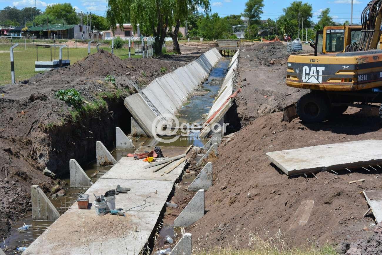 Luego de la licencia de la construcción, se reanudaron las tareas en el canalizado de un tramo de este curso de agua sobre una extensión de 110 metros. En el sector que da al norte se montan los encofrados para los laterales y se conforma la base de hormigón que cubre el lecho de la cañada.