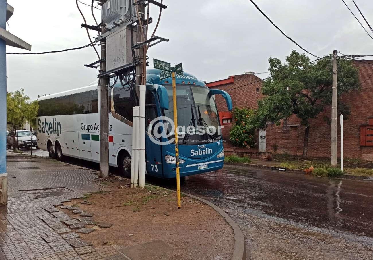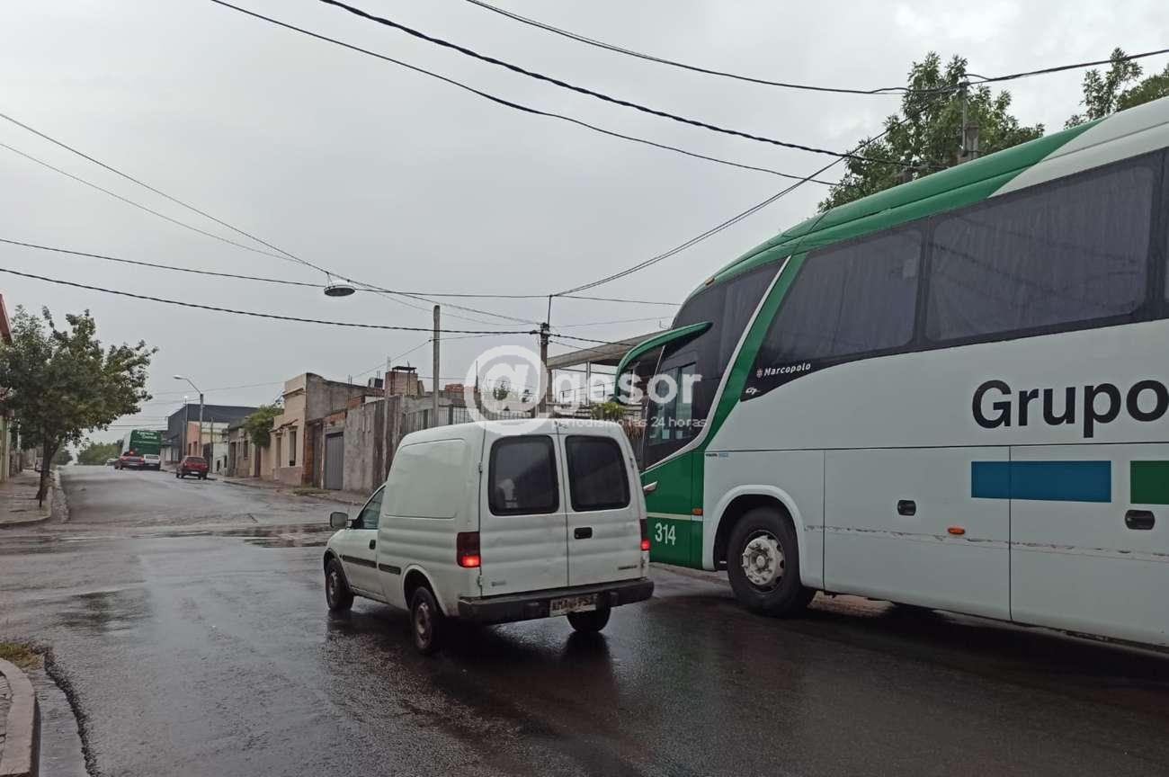 Y una cuadra más hacia el Sur apreciamos un tercer ómnibus pésimamente estacionado, ya fuera de línea inclusive con la propia esquina, tapando la vista del cartel que indica de ceda el paso a quienes vienen por Ituzaingó para cruzar Don Bosco, quienes circulaban por el lugar no tenían la menor visibilidad de quienes venían por Don Bosco porque el ómnibus no lo permitía.