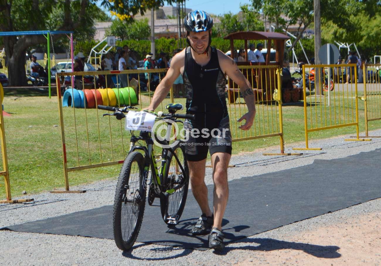 @gesor les ofrece otras imágenes de una mañana en la que 67 atletas de diferentes puntos del país tomaron parte del quinto Triatlón del Club Remeros Mercedes en las disciplinas natación, atletismo y ciclismo en forma individual y que tuvo el triunfo en la general a nivel masculino del fraybentino Santiago Sierra y en femenino de la mercedaria Ynela Aire.