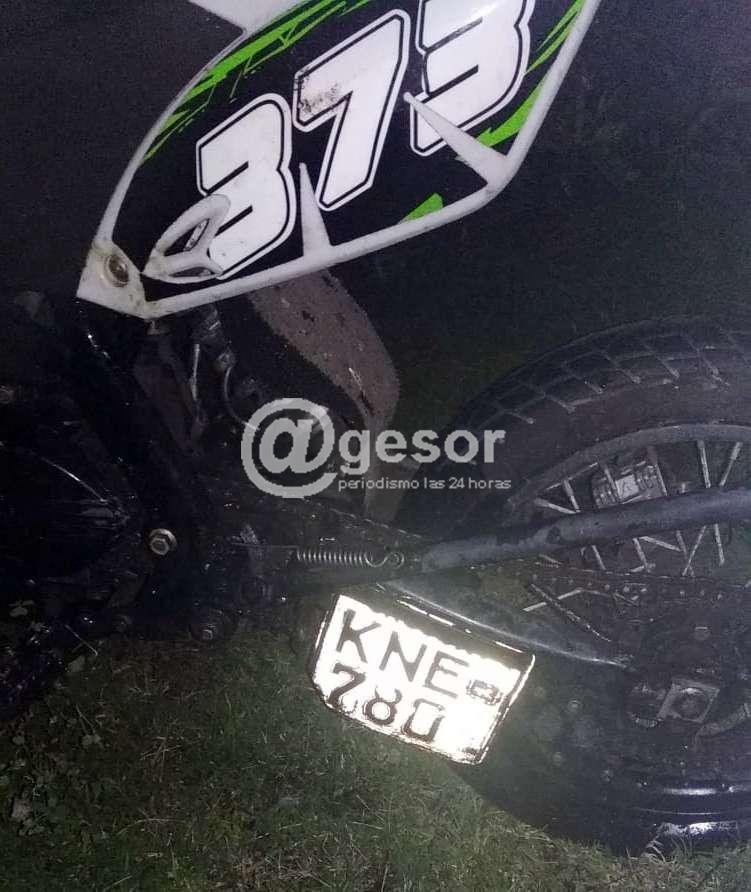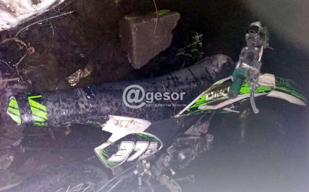 Personal policial junto a funcionarios de la Brigada de Tránsito de la Intendencia de Soriano ante aviso de personas que transitaban por el arroyo Dacá a la altura del puente Caviglia, rescataron en las primeras horas de la noche de este sábado una moto matrícula KNE 780 marca Dirty del tipo de competición con el número en el frente y al costado del tanque de combustible, 373.