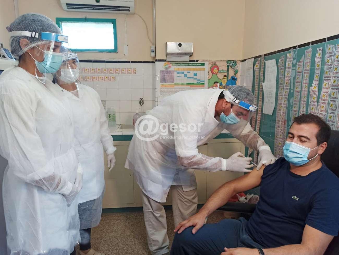 Fue inoculado por el funcionario Gustavo Manzanares, previamente pasó por la funcionaria administrativa María que le tomó los datos filiatorios y le hizo firmar el consentimiento, luego pasó al sillón y allí recibió la vacuna.