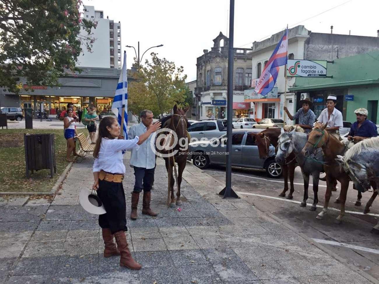 Un grupo de gauchos y gauchas se reunieron se marcharon hasta plaza Independencia llegando al céntrico paseo mercedario donde se erige el monumento al Gaucho de Asencio, allí una señora vestida con la tradicional vestimenta gaucha, se refirió al hecho histórico.