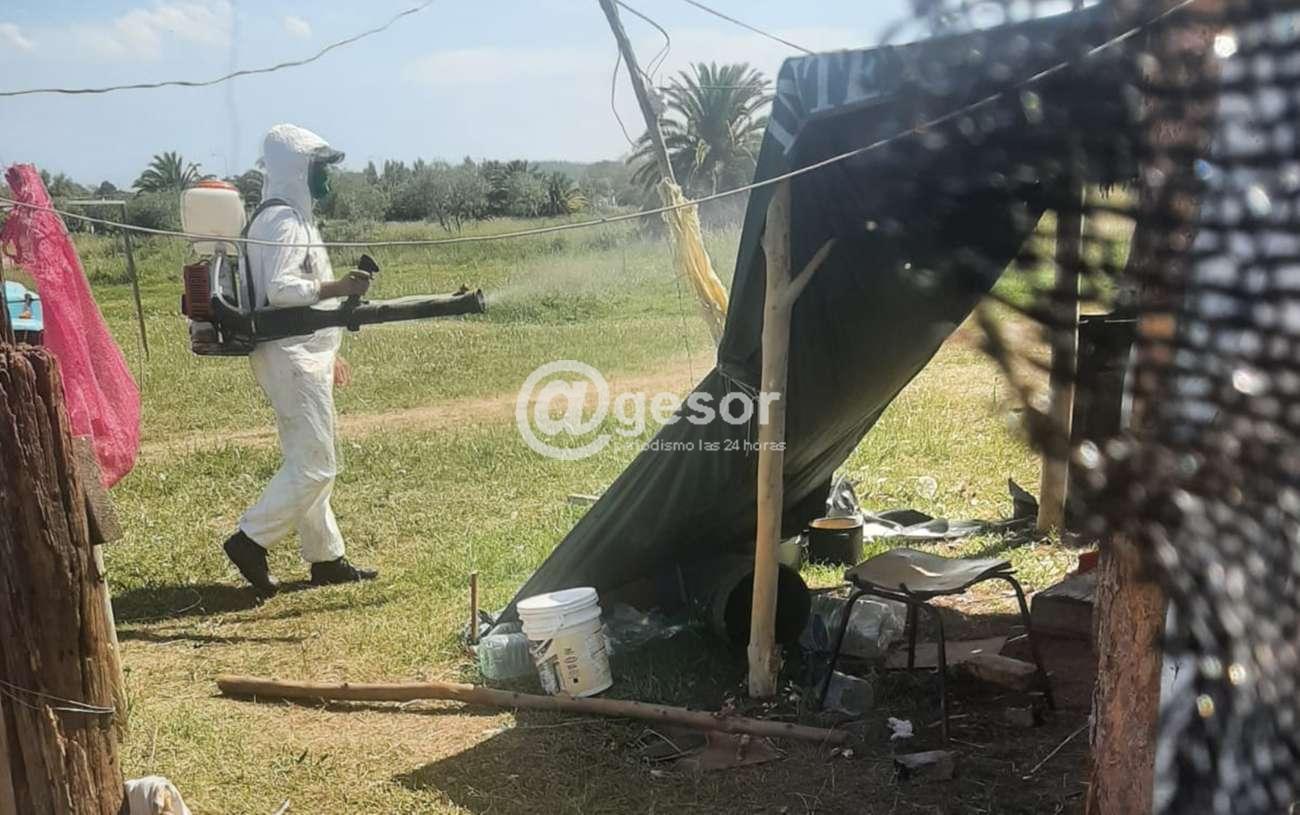 Personal de la Dirección de Higiene de la Intendencia de Soriano realizó este viernes, una tarea de desinfección en el asentamiento situado cerca de los silos de Calmer, junto a las vías férreas de AFE.