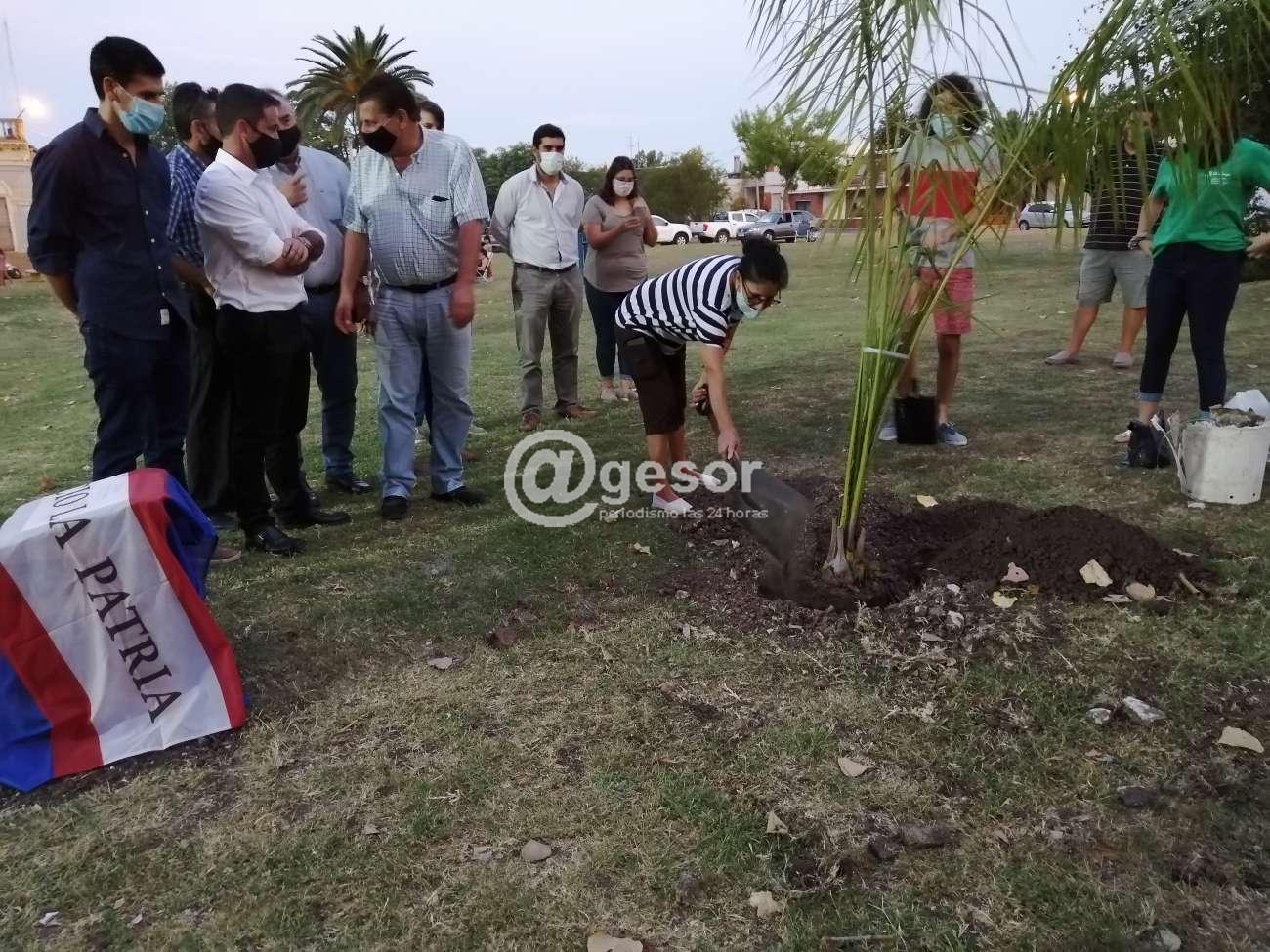 Posteriormente entre todos los presentes se plantó una palmera y se descubrió una placa en recuerdo de este aniversario.