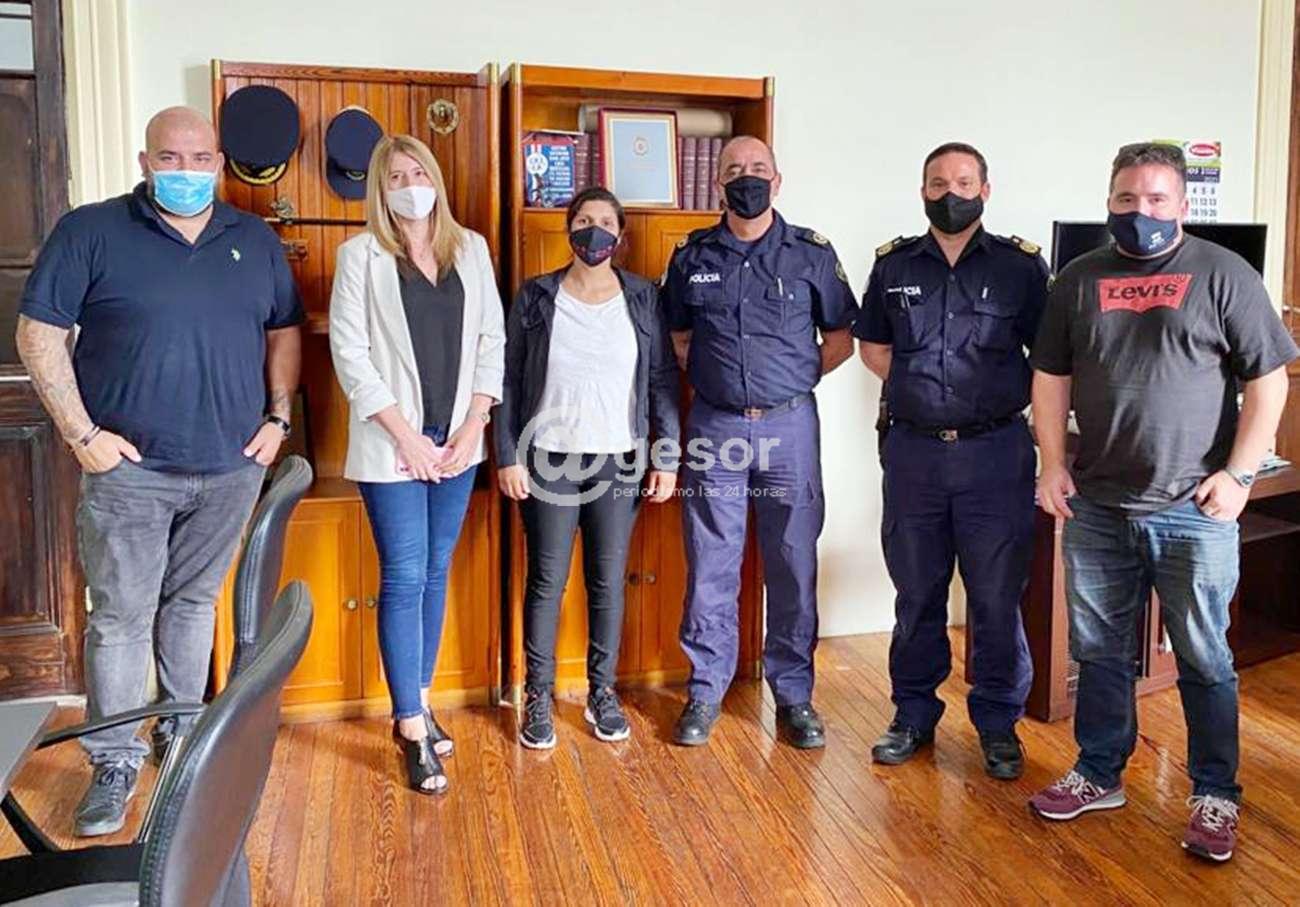 En despacho del Jefe de Policía de Soriano, Crio. May. (r) William Martínez, que estuvo acompañado por el Coordinador Ejecutivo Crio. May. Carlos Escobar, éstos recibieron a delegación del Sindicato de Funcionarios Policiales filial Soriano (SIFPOM), encabezada por Fabricio Ríos (Secretario General), junto a Eduardo Andrade (Secretario de Finanzas) y la asesora legal Dra. Jennifer Izquierdo, junto a la delegada departamental por Soriano, Sofía González.