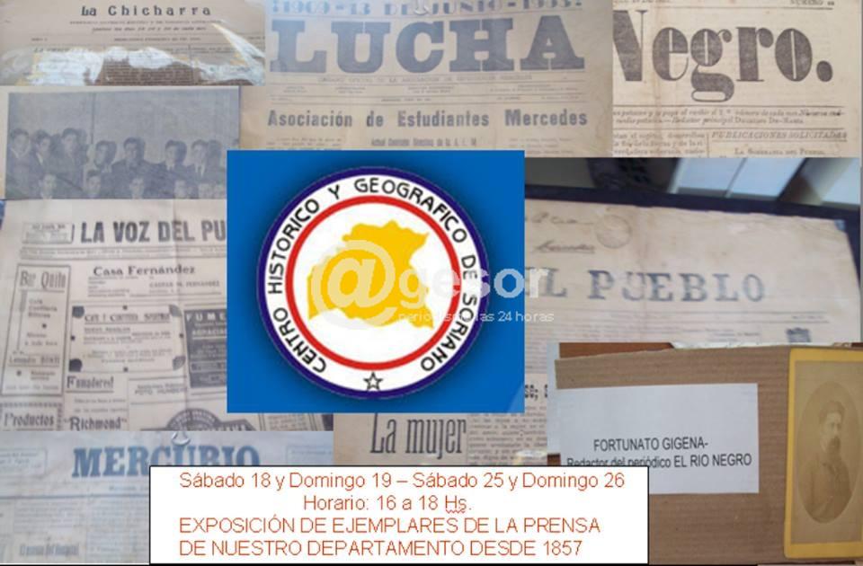 Centro Histórico y Geográfico de Soriano en el marco de sus distintas actividades prepara para el sábado 18 y domingo 19 de Mayo en el horario de 18 a 20 horas, una muestra de ejemplares de la prensa de Soriano desde el año 1857.