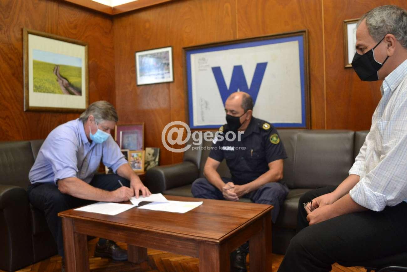 La rúbrica del comodato se produjo en el despacho del jefe comunal, estampando la firma además de Besozzi, el Jefe de Policía de Soriano, Crio. May. (r) William Martínez.