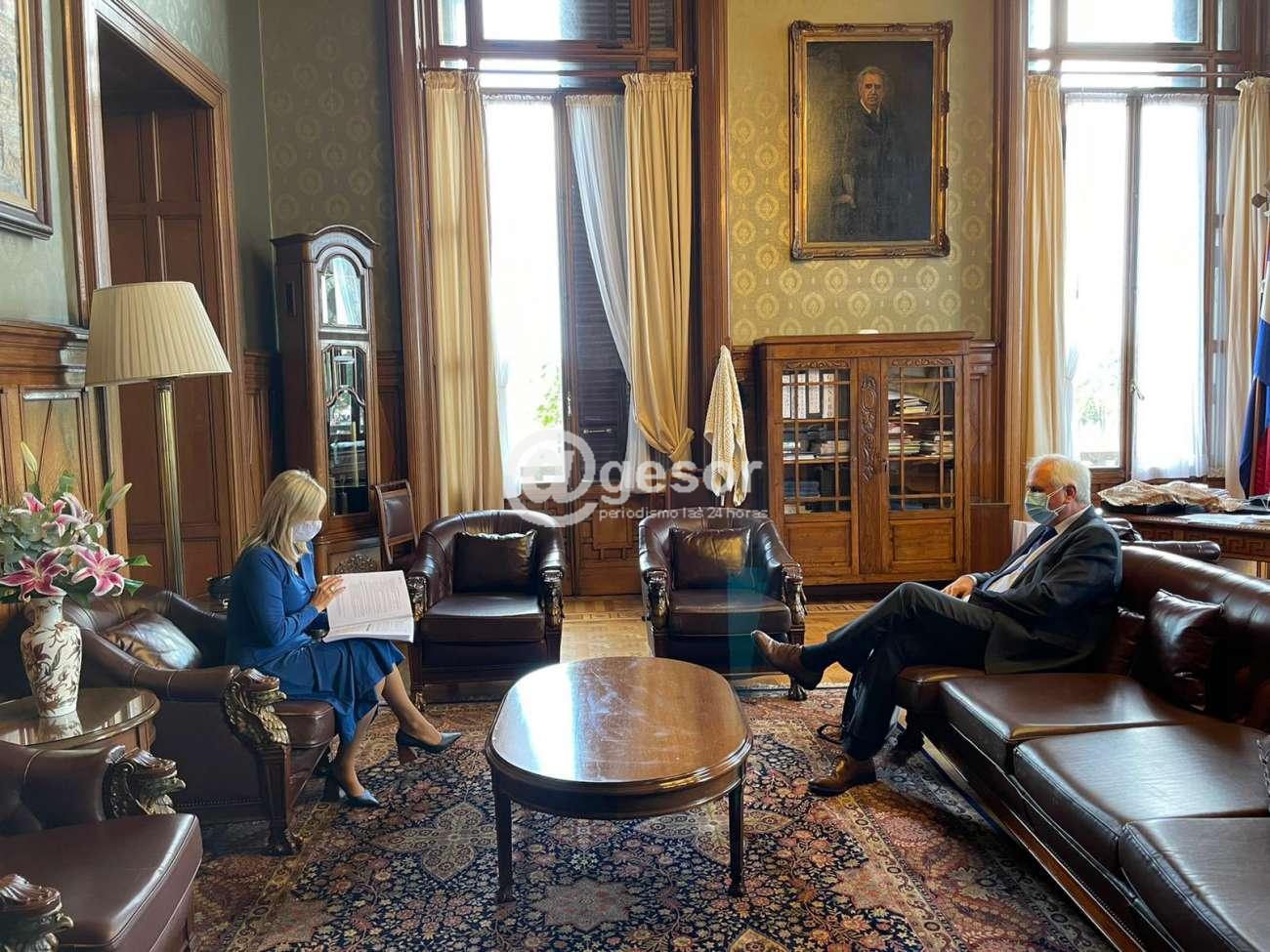 El presidente de la CESS, Rodolfo Saldain, entregó el informe al Prosecretario de la Presidencia, Rodrigo Ferrés, así como a la Vicepresidenta de la República, Beatriz Argimón.