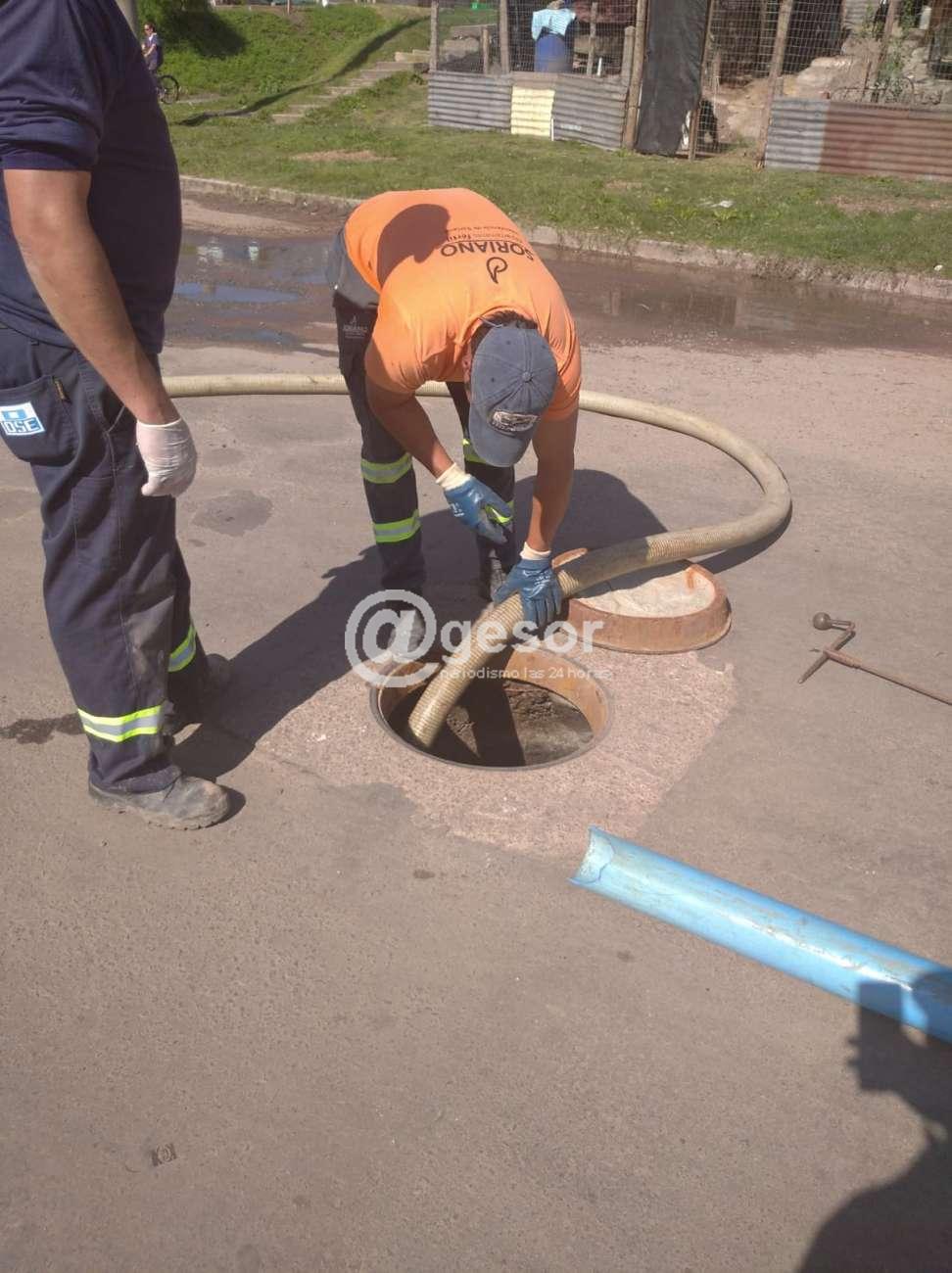 En el marco de un trabajo en conjunto entre la Intendencia de Soriano y OSE, se intervino en un caño de saneamiento tapado en la esquina de las calles Gaspar González y Magnone en la ciudad de Mercedes.