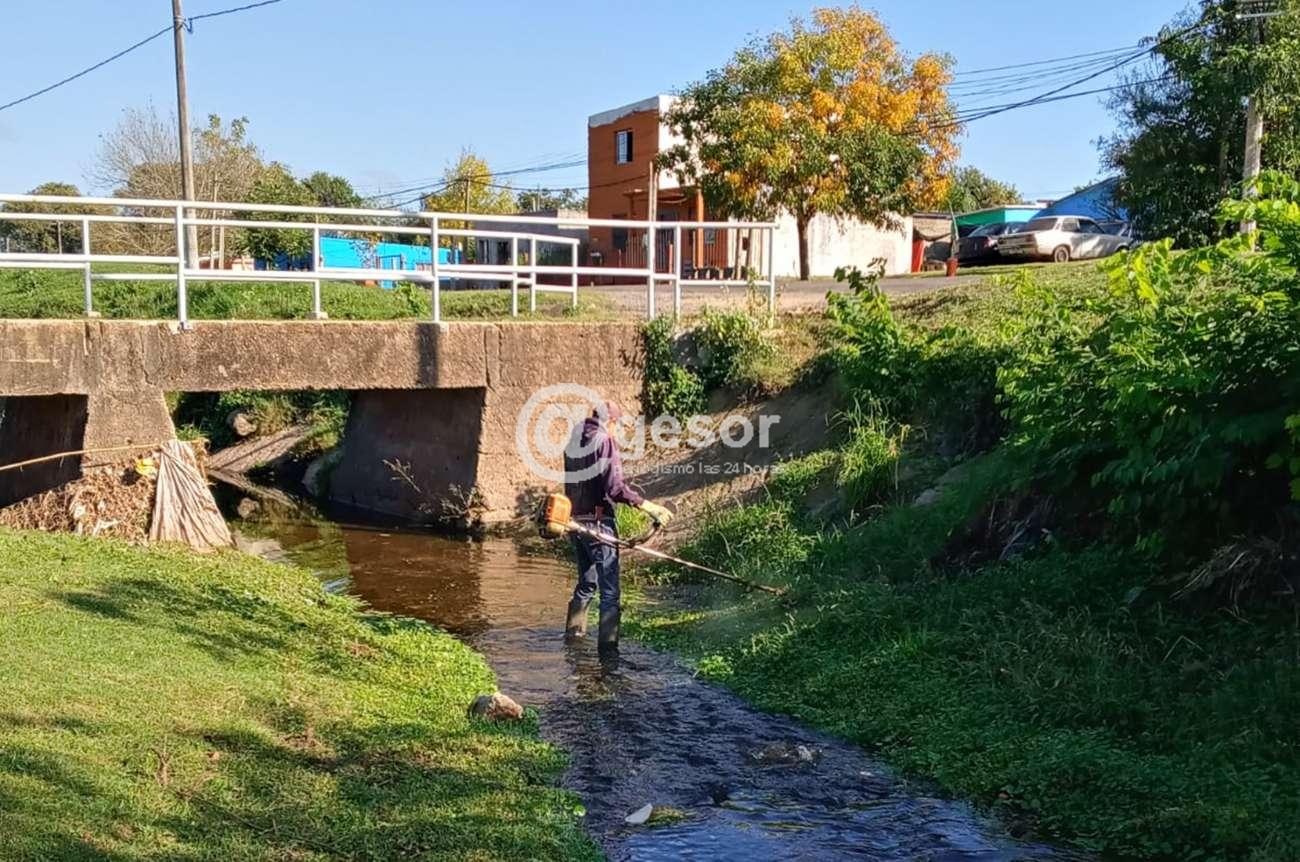 Paralelamente se prosigue con las tareas de limpieza, corte de pasto y arbustos en distintas zonas urbanas y suburbanas de la capital departamental. Es el caso de los alrededores de la cancha de Barrio Nuevo, cooperativas COVIASA y COVIANALPA 5, zona de calles Andresito y Oribe, sector a lo largo de la vía férrea en su pasaje por barrio “Túnel”, márgenes de cañada De los hornos, acceso a parque Don Bosco, camino Olazagasti, cañada situada a los fondos del barrio “33 Orientales” y margen derecho de arroyo Dacá en la costanera Fco. Mario Ubillos del parque “Guernika” donde además se sigue con el relleno del terraplén.