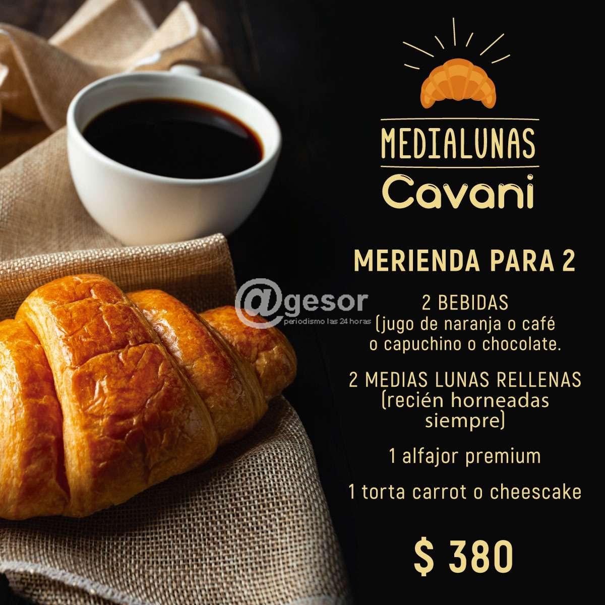 Por el otro disfrutar en los locales mencionados, una merienda para dos compuesta por dos bebidas (ya jugo de naranja o café o capuchino o chocolate), acompañadas de dos medialunas rellenas recién horneadas siempre, un alfajor premium y una torta carrot o cheescake, el precio de la merienda a $ 380 para dos personas.