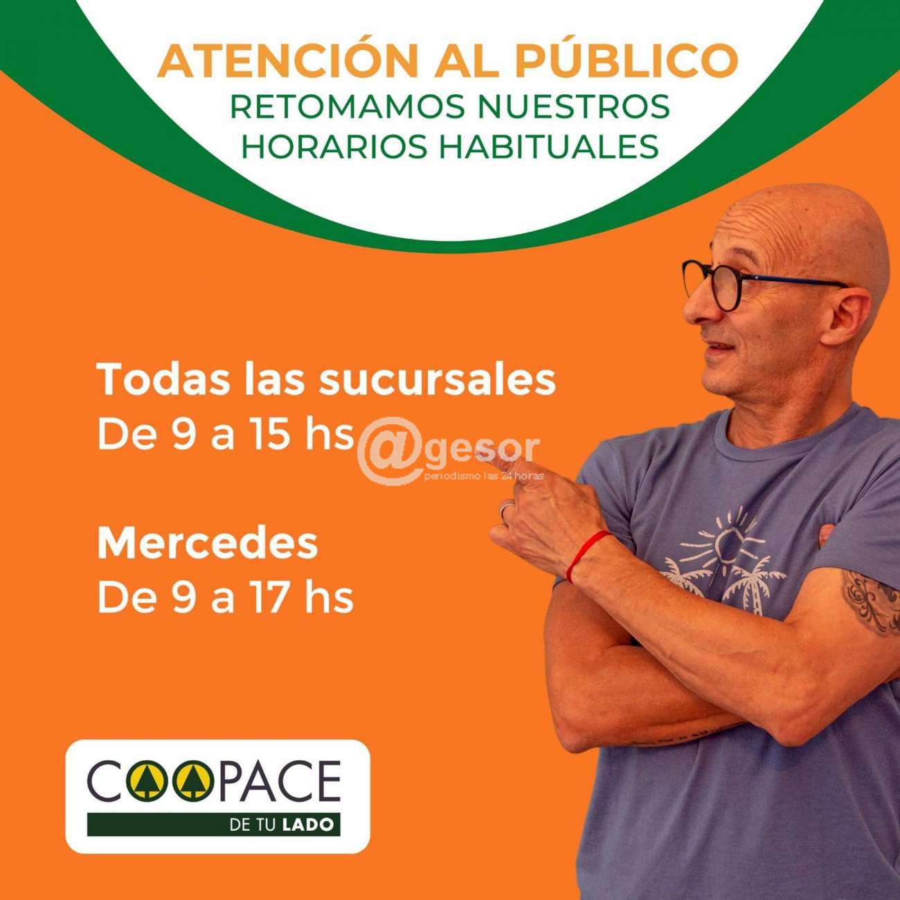 COOPACE informa que al regresar a la atención presencial del público, las diferentes sucursales retomaron los horarios habituales.
