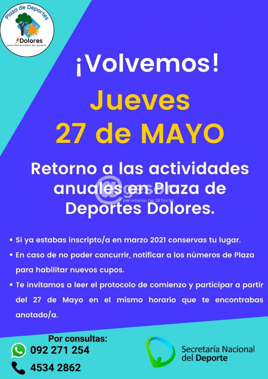 Este jueves 27 de mayo retornas las actividades de la Plaza de Deportes de Dolores.