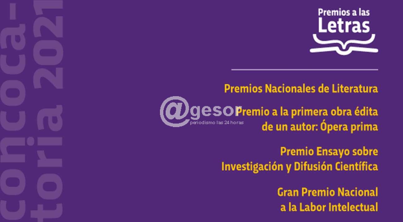 Los Premios a las Letras 2021 incluyen: Premios Nacionales de Literatura, Premio de Ensayo y Difusión Científica, Premio Ópera Prima y Gran Premio a la Labor Intelectual.
