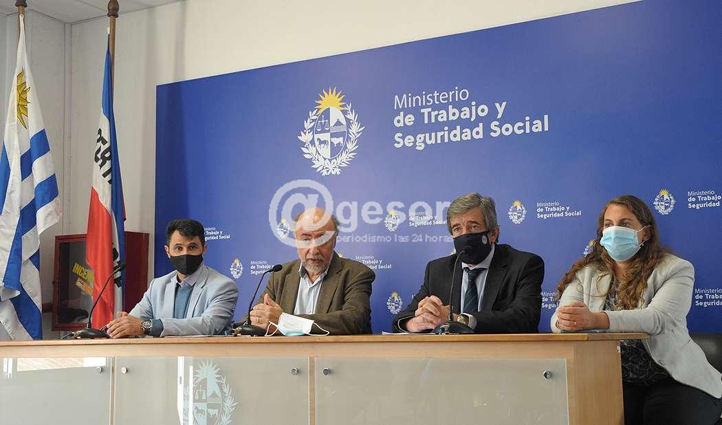 Acompañado por el subsecretario de Trabajo y Seguridad Social, Mario Arizti, la directora general de Trabajo, Valentina Arlegui, y el director nacional de Empleo, Daniel Pérez, Mieres presentó este jueves 6 las principales innovaciones del proyecto de ley de promoción del empleo para sectores socialmente vulnerables, anunciado el 1.° de mayo de 2021.