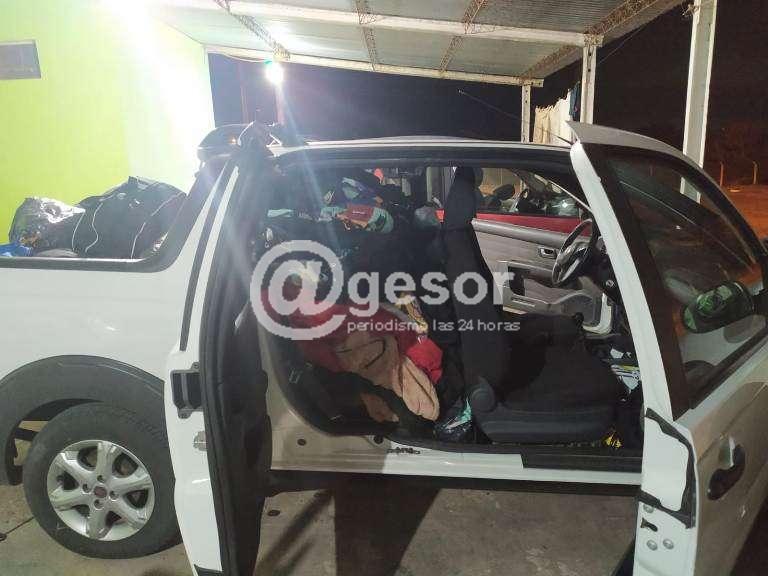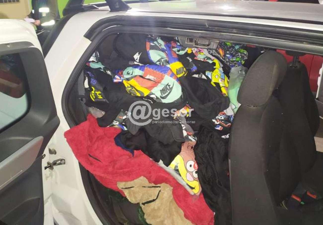 En la inspección se observa que se transportan diversos bultos de nylon negro en la caja del vehículo y en el habitáculo, que luego se constata que se trata de ropa y calzado de procedencia argentina.