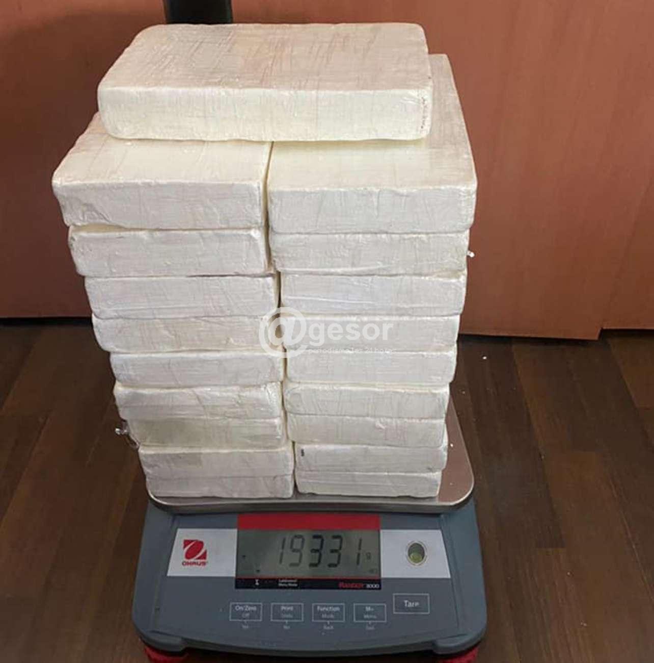 A la inspección del vehículo se encuentran en el interior de él lo que luego de realizadas las pruebas arrojó como resultado ser cocaína, en un peso de 19,311 kg.