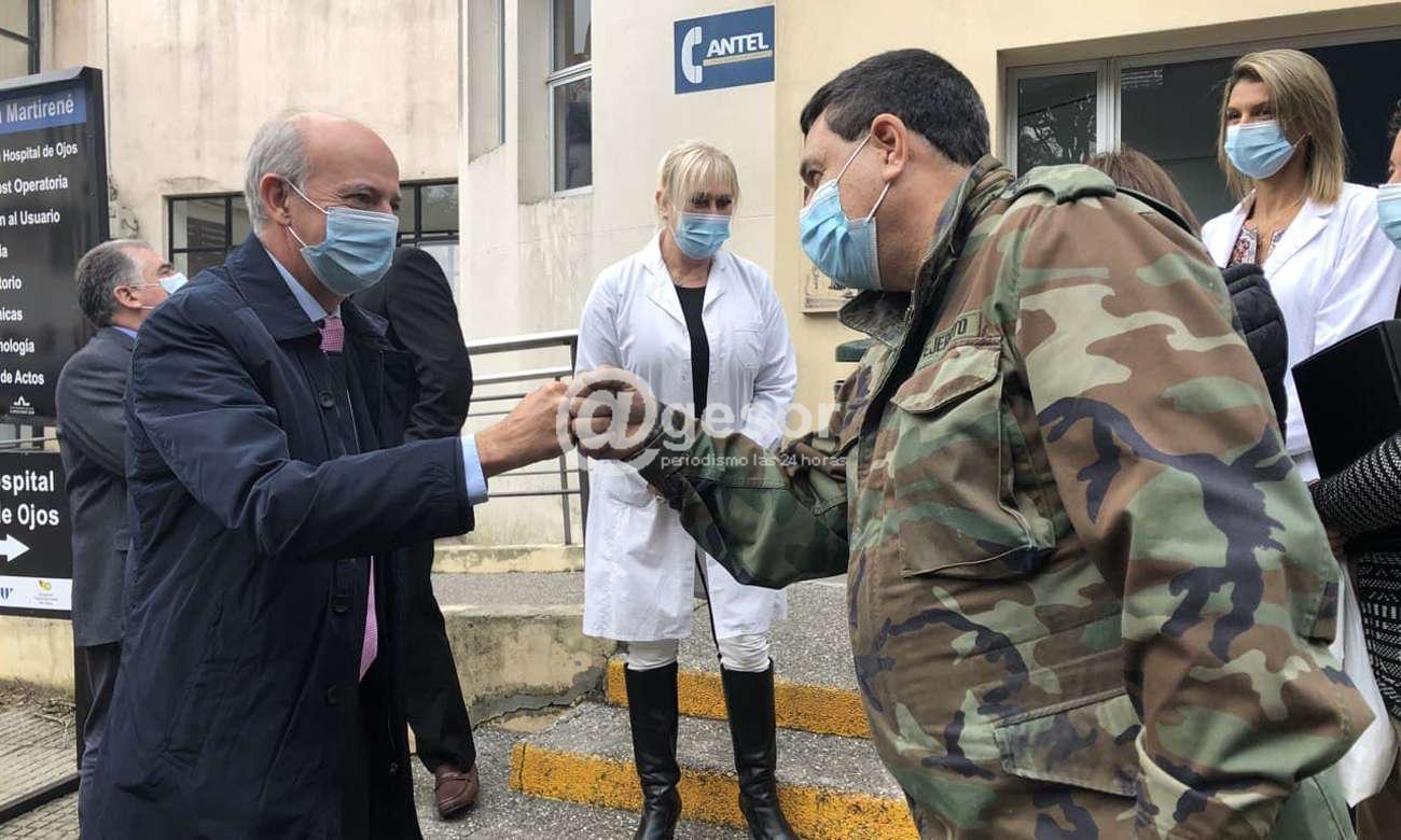 El ministro García junto al presidente de Asse, Leonardo Ciprinani, participó en el acto de inauguración de obras en el hospital de ojos, las que estuvieron a cargo de personal de la Dirección de Arquitectura e Infraestructura Hospitalaria de Sanidad de as Fuerzas Armadas, en el marco de un convenio firmado por el Ministerio de Defensa en noviembre del año 2009. Se trata de un nuevo block quirúrgico y farmacia.