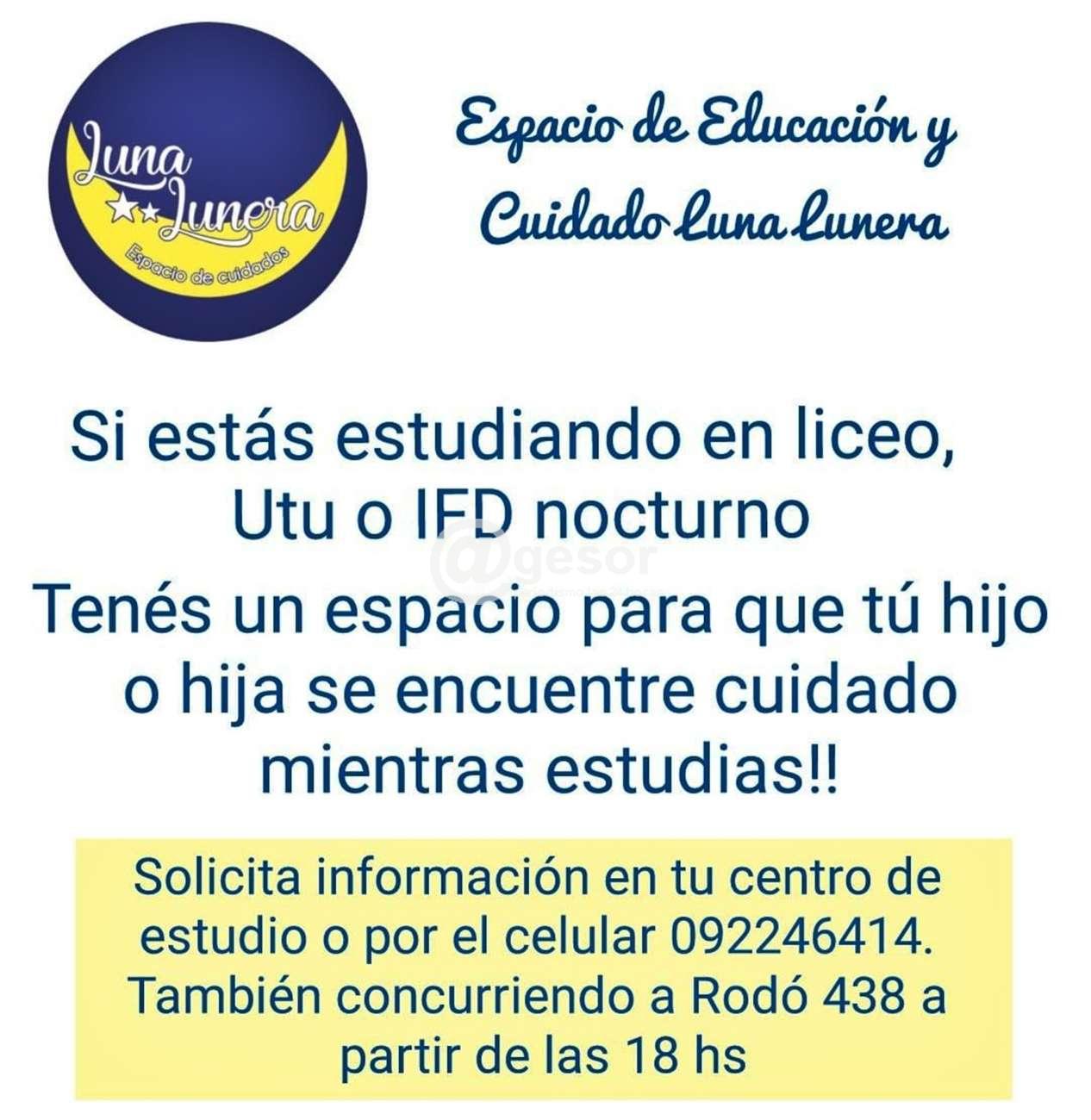 Si estás estudiando en liceo, UTU o IFD nocturno, tenés un espacio para que tú hijo o hija se encuentren cuidados mientras estudias!!!