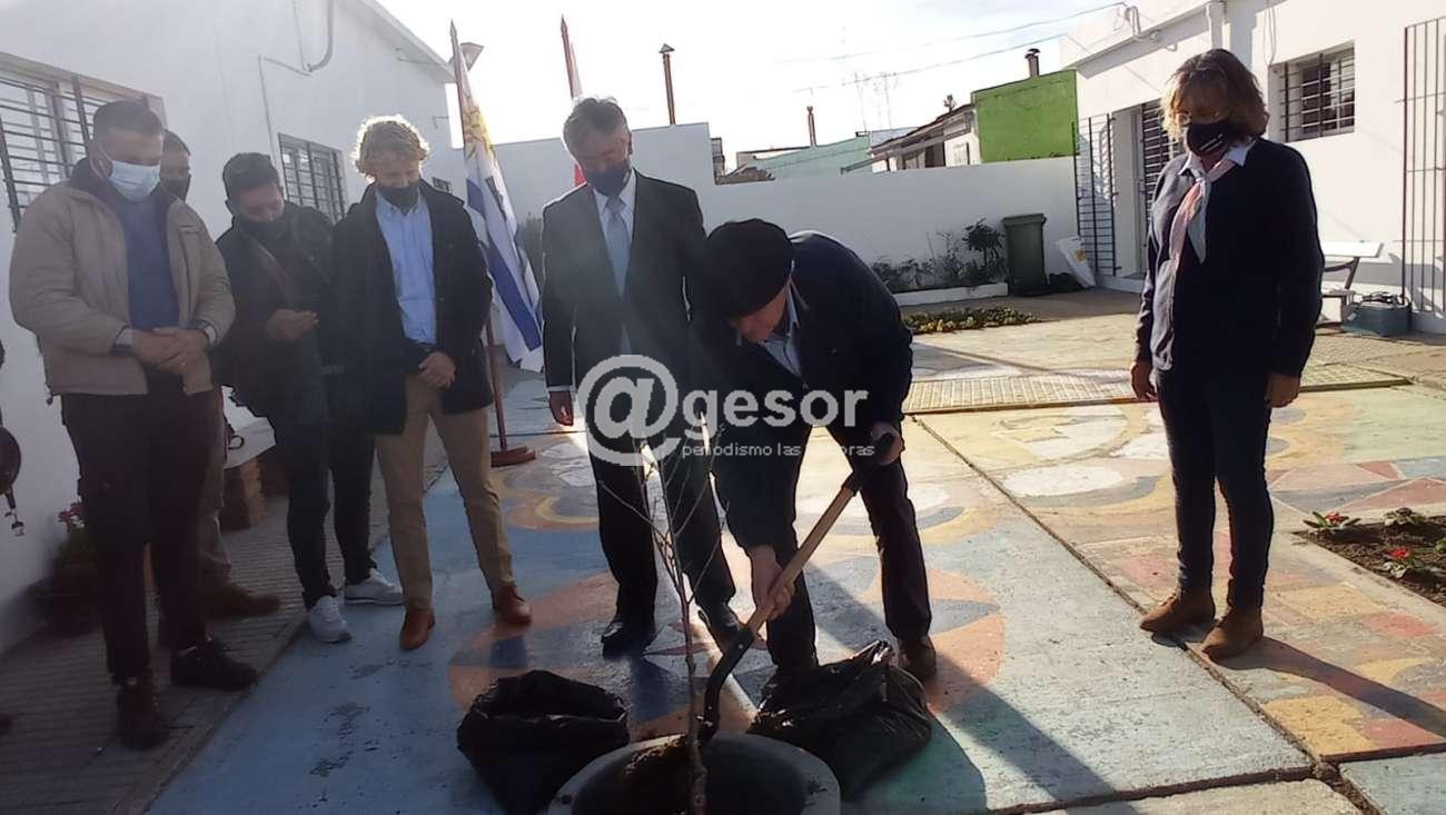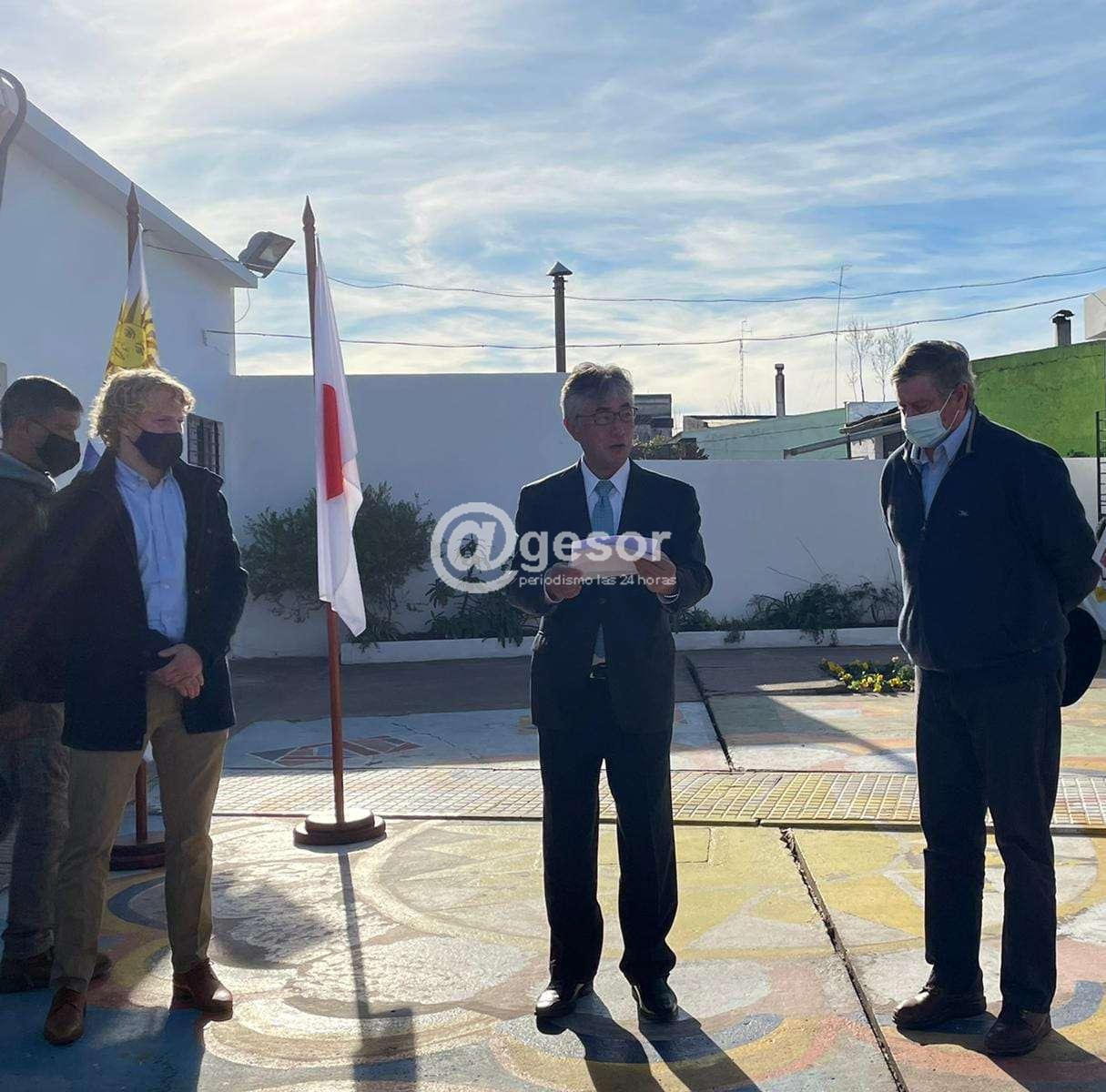 Este jueves el intendente Guillermo Besozzi recibió en Dolores al embajador de Japón en Uruguay, Tatsuhiro Shindo. El diplomático llegó para visitar el Centro Cultural del barrio Sur, cuya ampliación fue financiada con fondos del gobierno japonés, oportunidad en la que junto al intendente y autoridades locales plantó un ejemplar de Sakura (árbol emblemático de Japón).